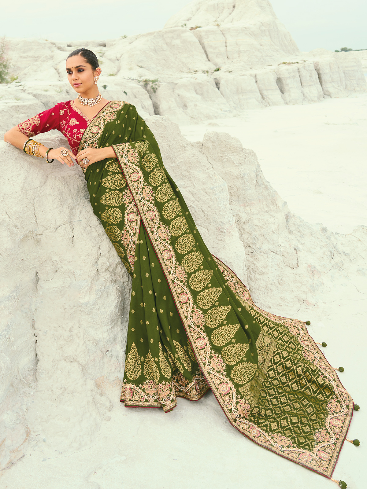 Mehendi Green Dola Viscose Saree With Beads And Cutdana
