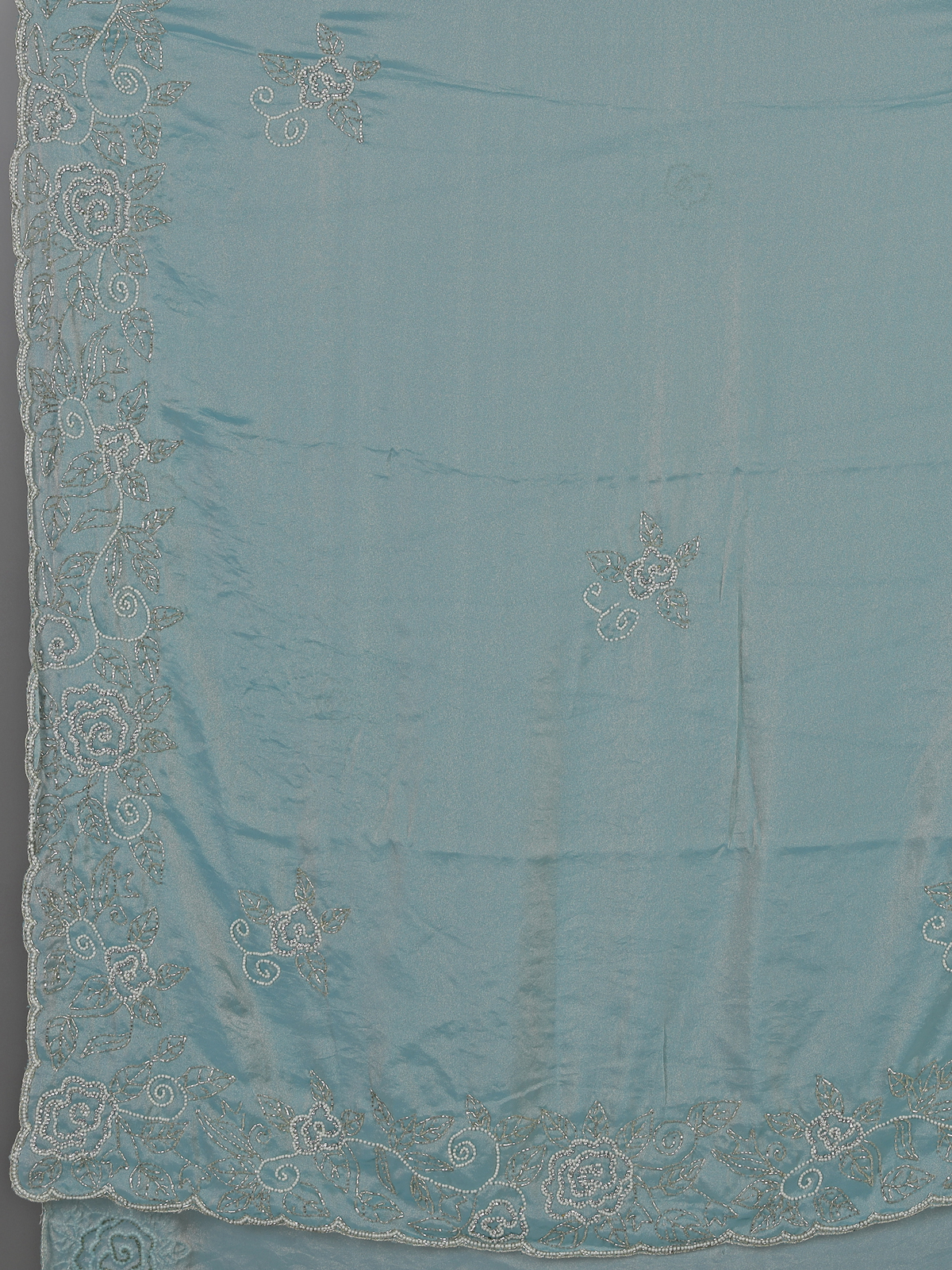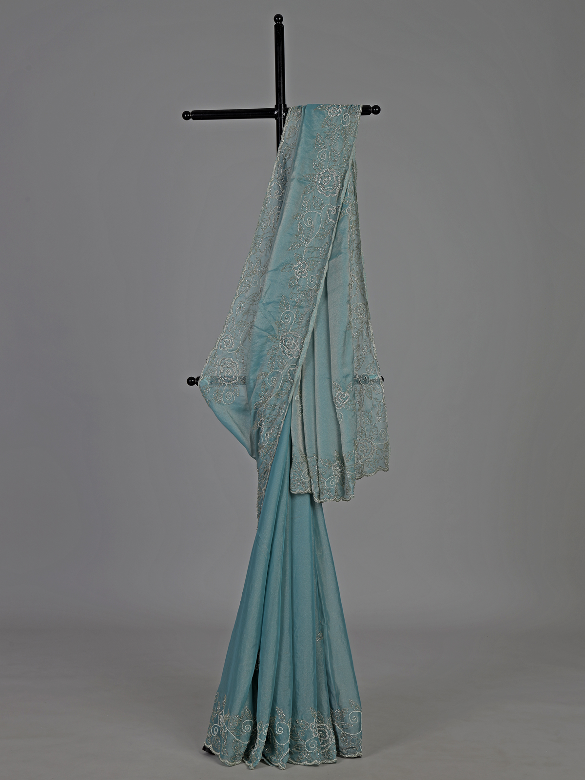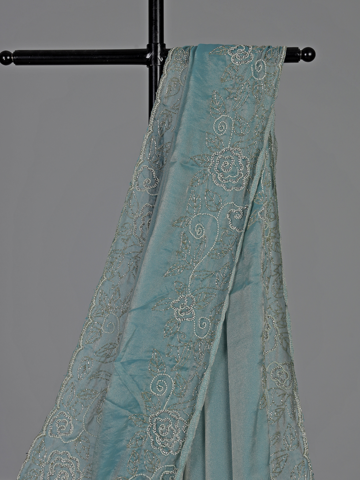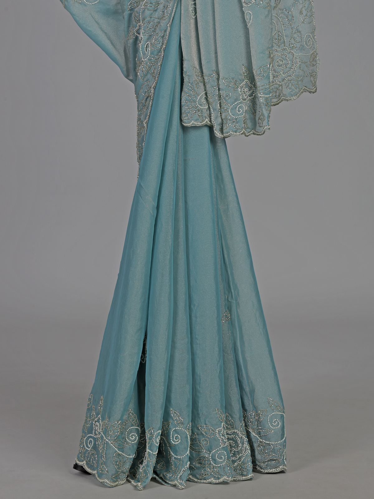 Mint Blue Tissue Silk Pearl And Diamond Saree