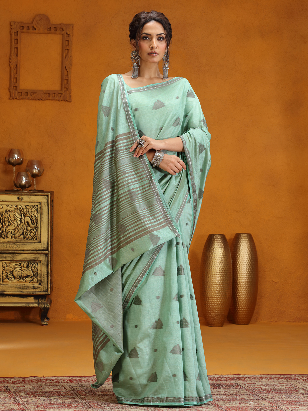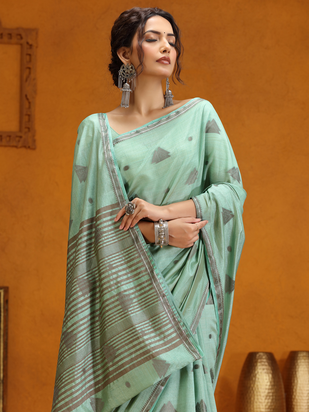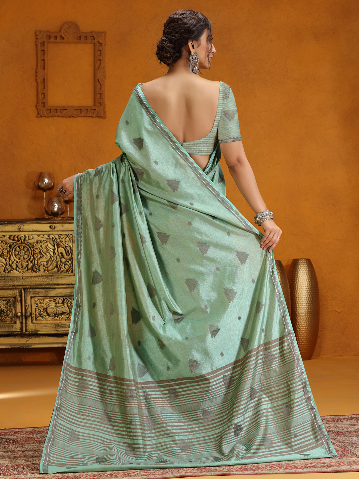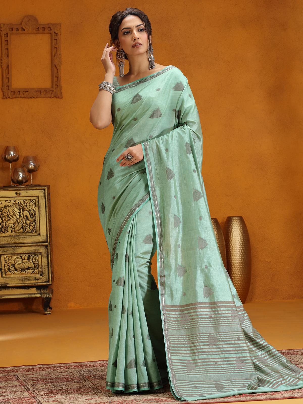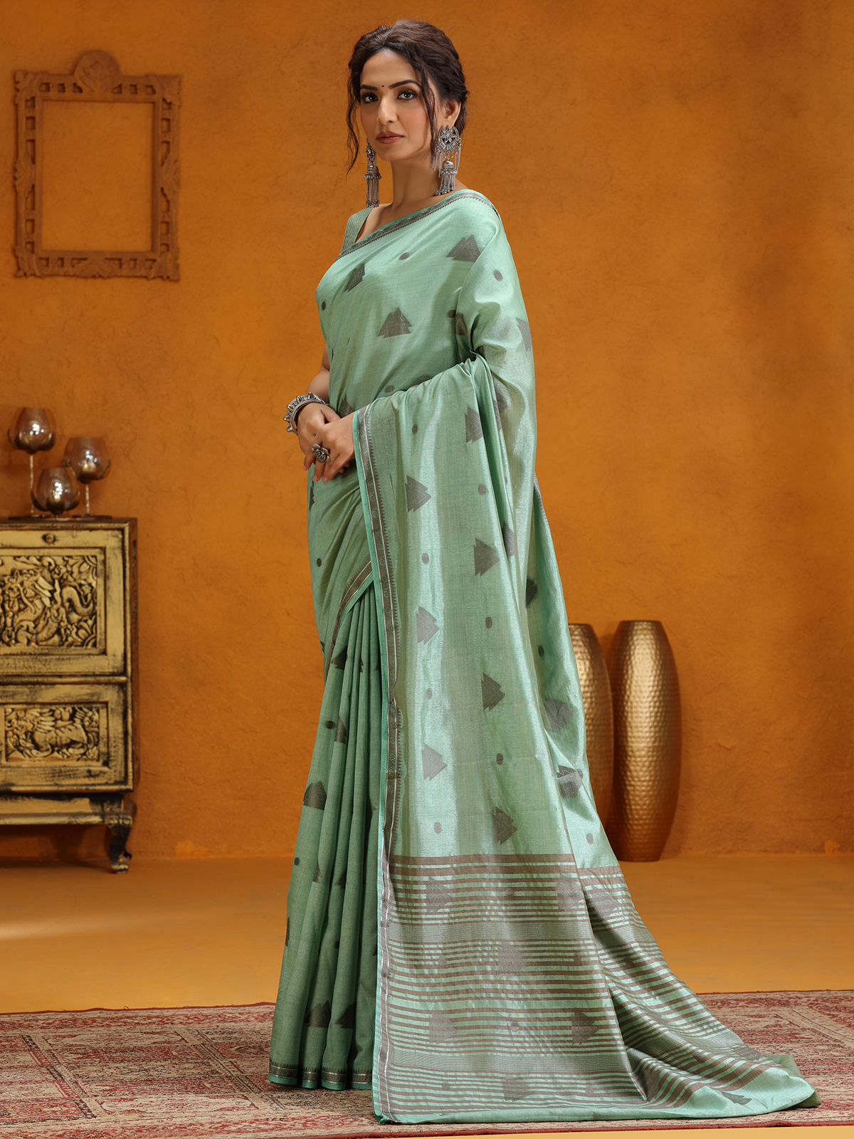 Mint Green Silk Saree With Elegant Zari Weaving