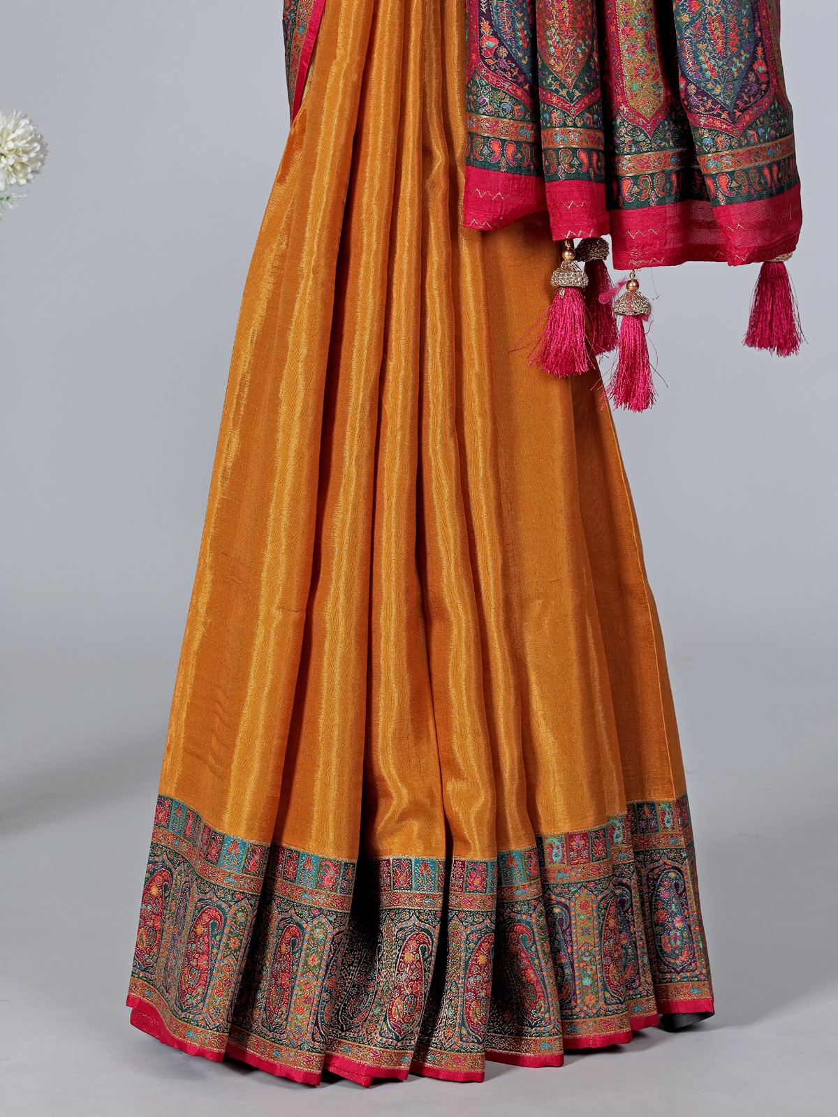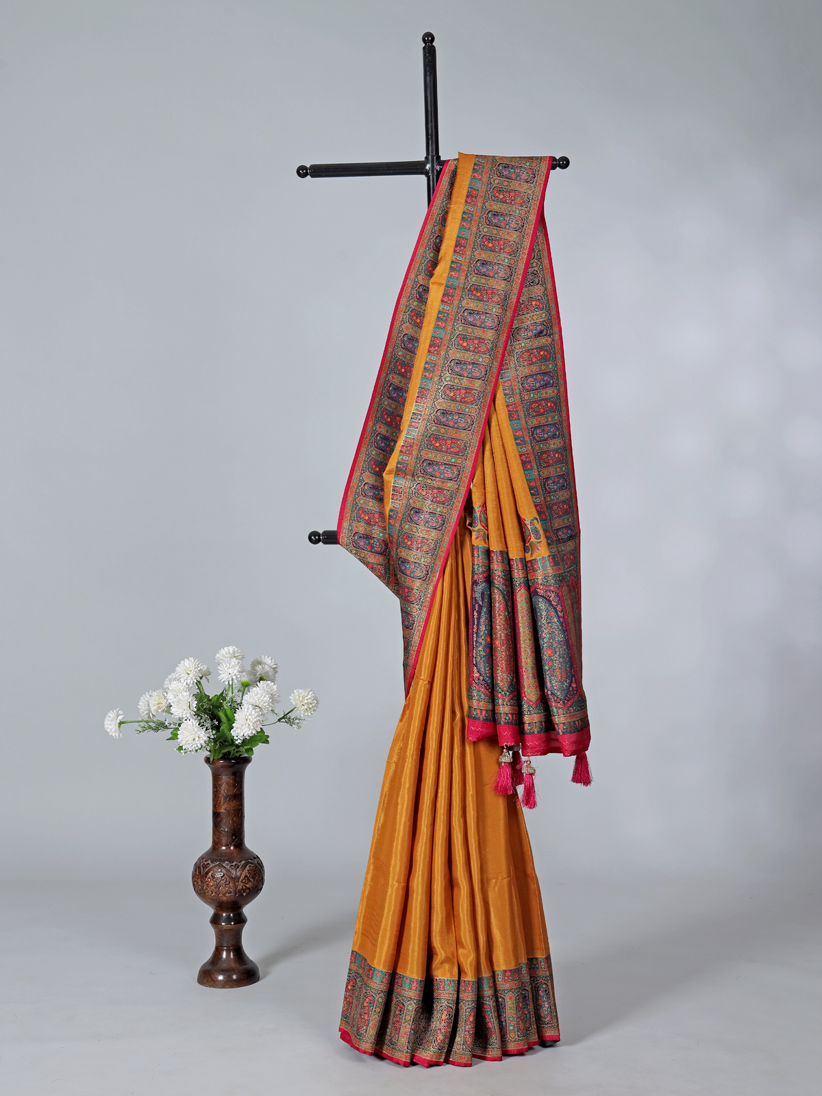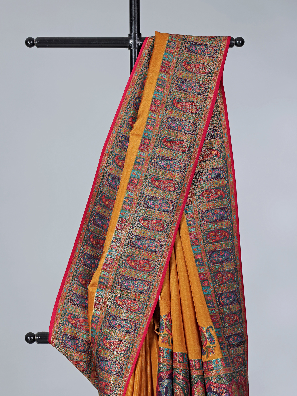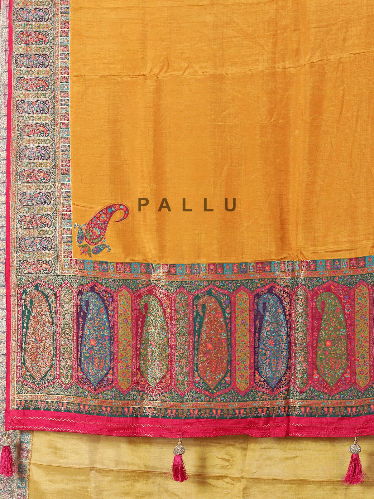 Mustard Yellow Art Pashmina Silk Saree Showcasing Timeless Embroidery