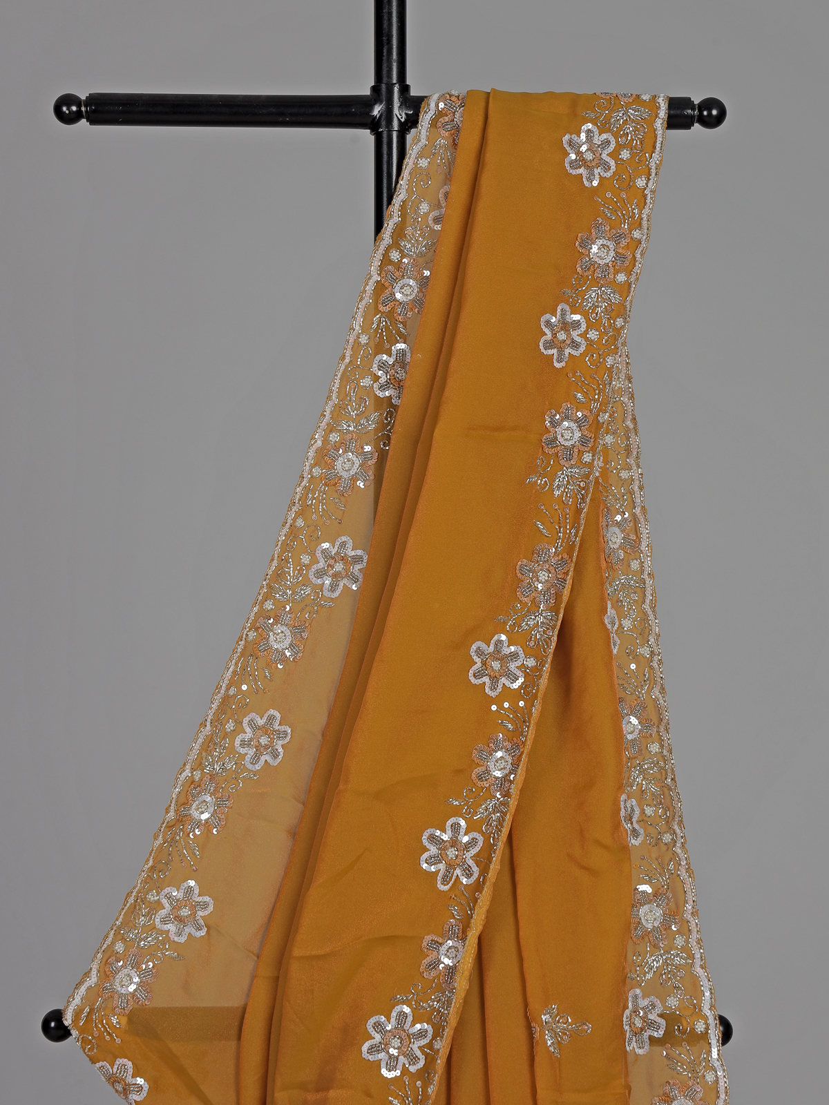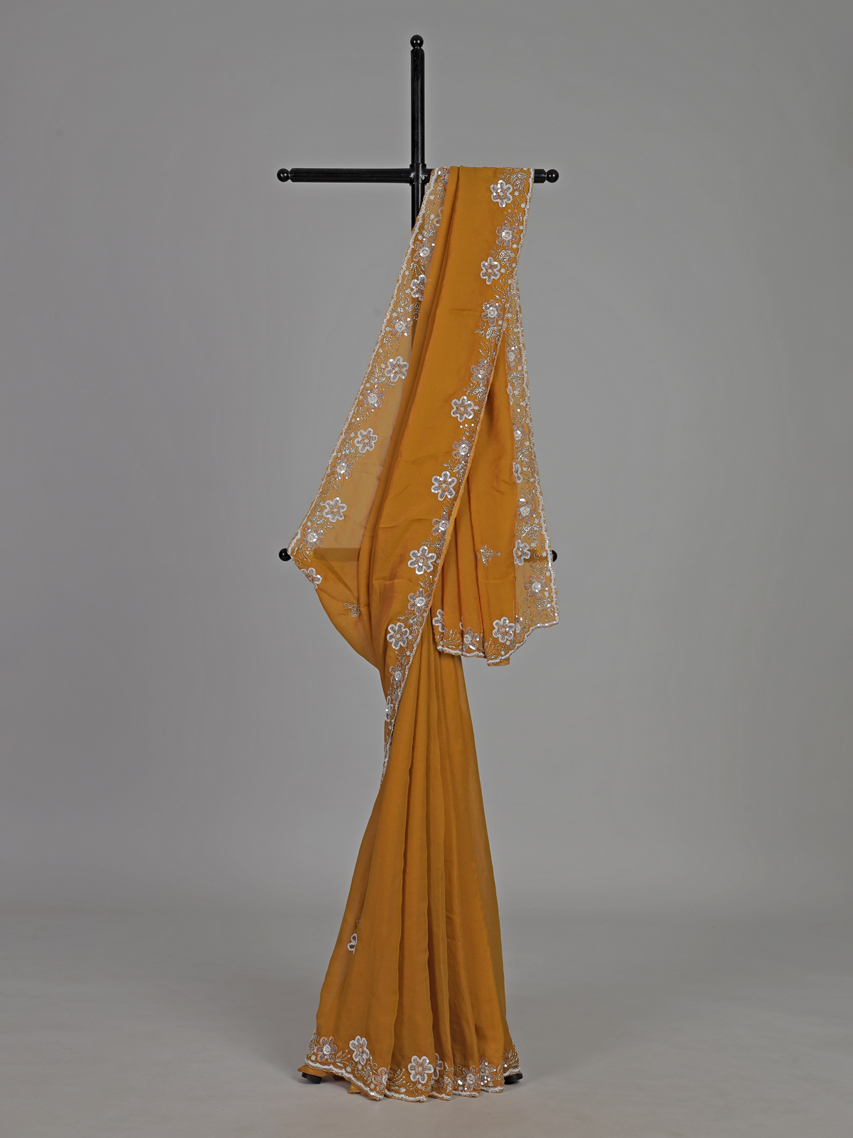 Mustard Yellow Chiffon Haldi Festive Embellished Saree Elegance