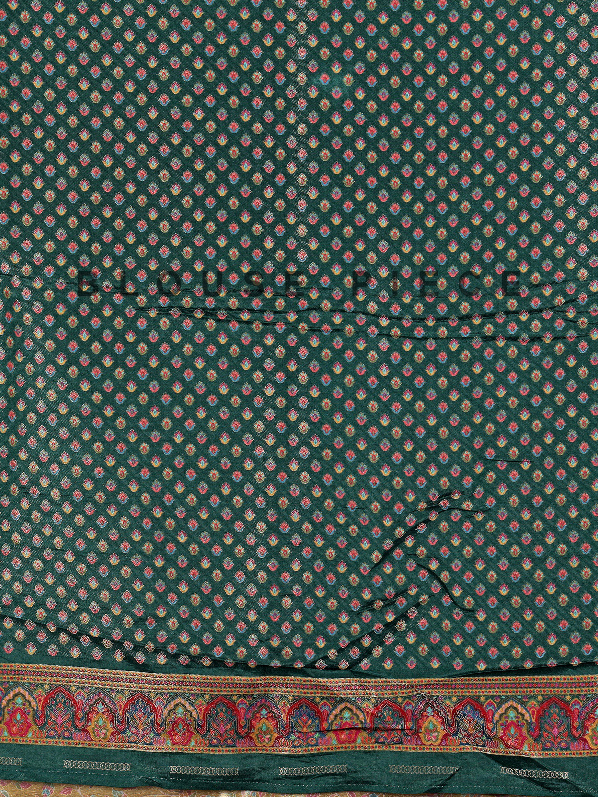 Warm mustard yellow hues bring festive vibrance to this semi pashmina silk saree. Enhanced with zari and colorful motif weaving, it reflects traditional richness. Perfect for haldi, weddings, and celebrations, it is paired with an unstitched blouse for a complete ethnic look.
