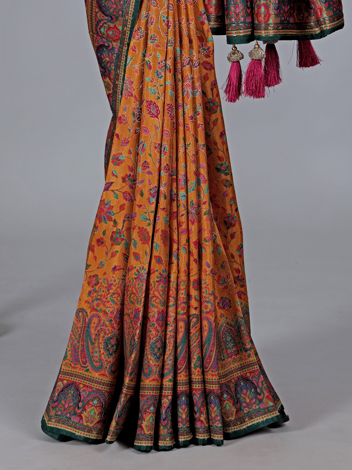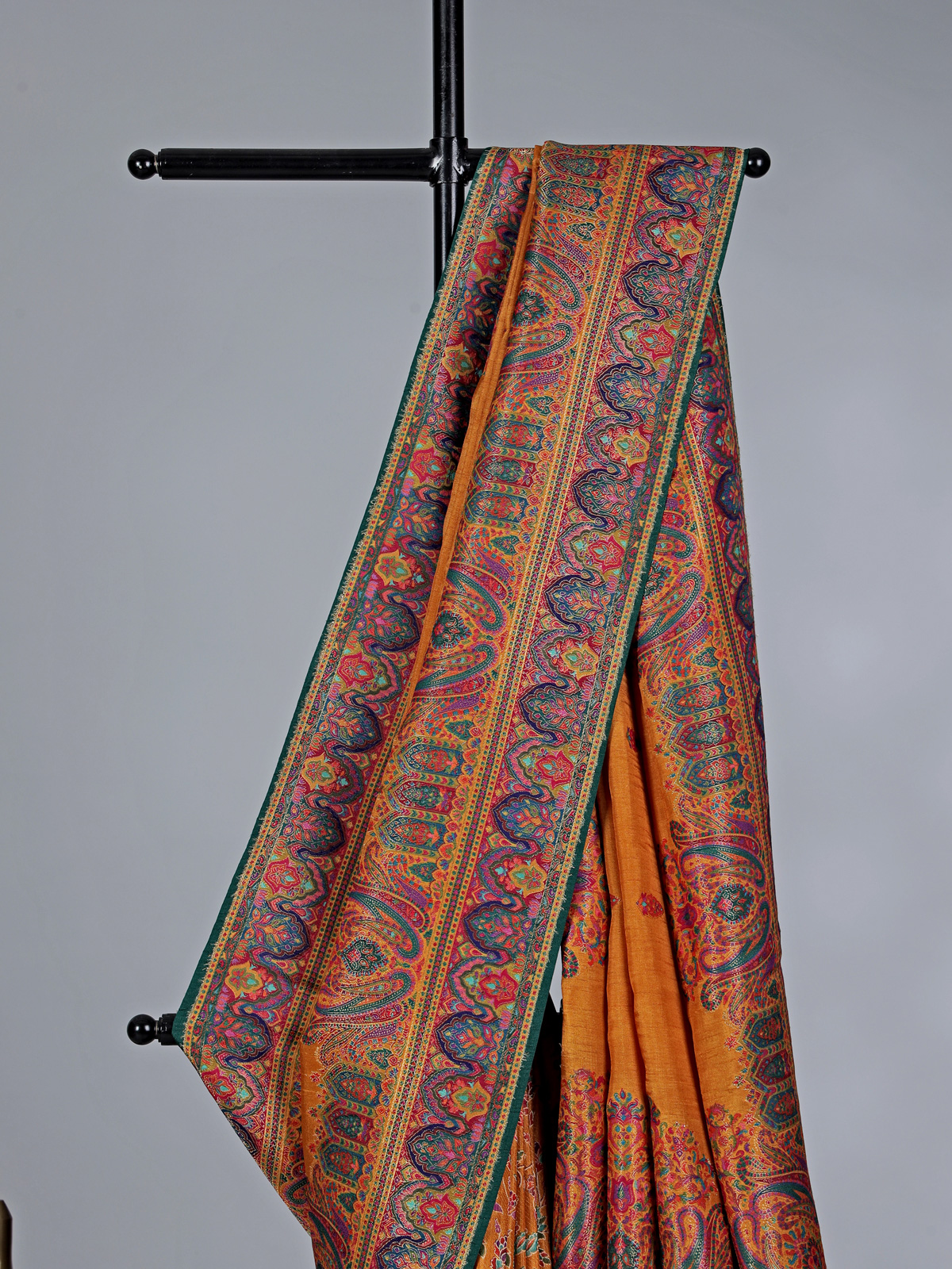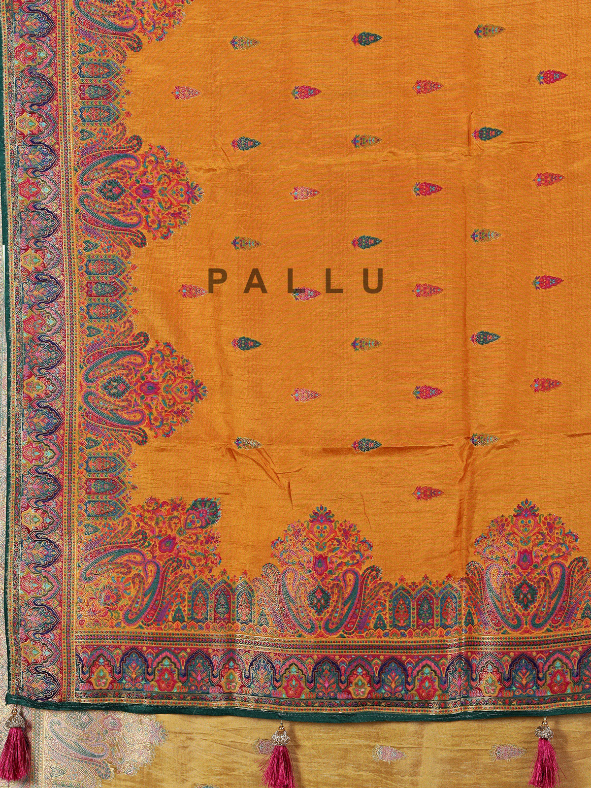 Mustard Yellow Haldi Wear Semi Pashmina Silk Saree