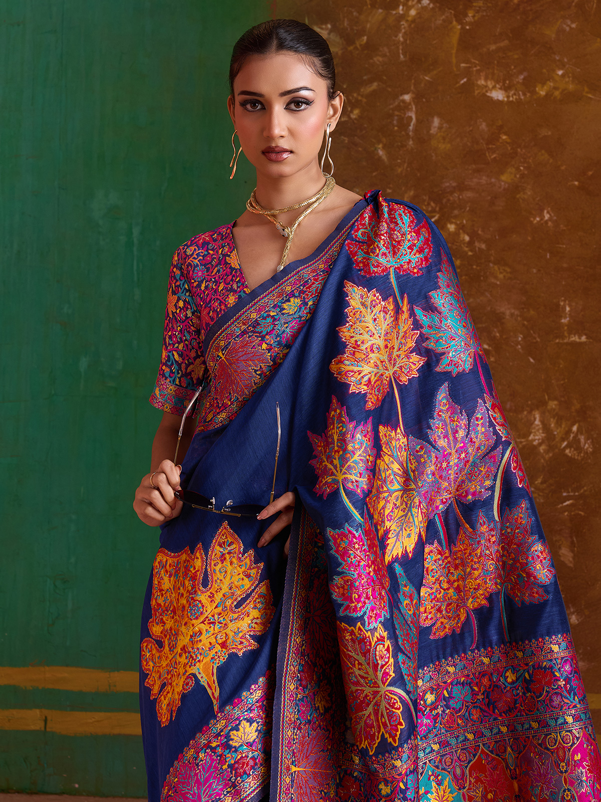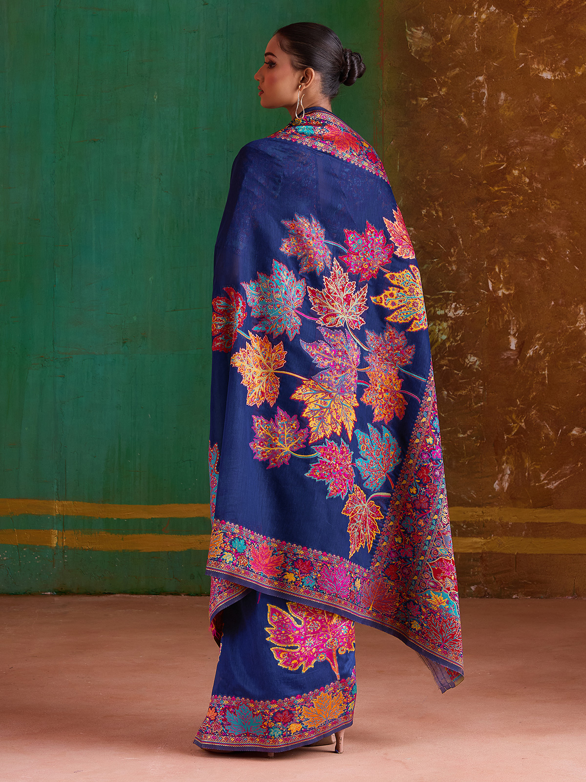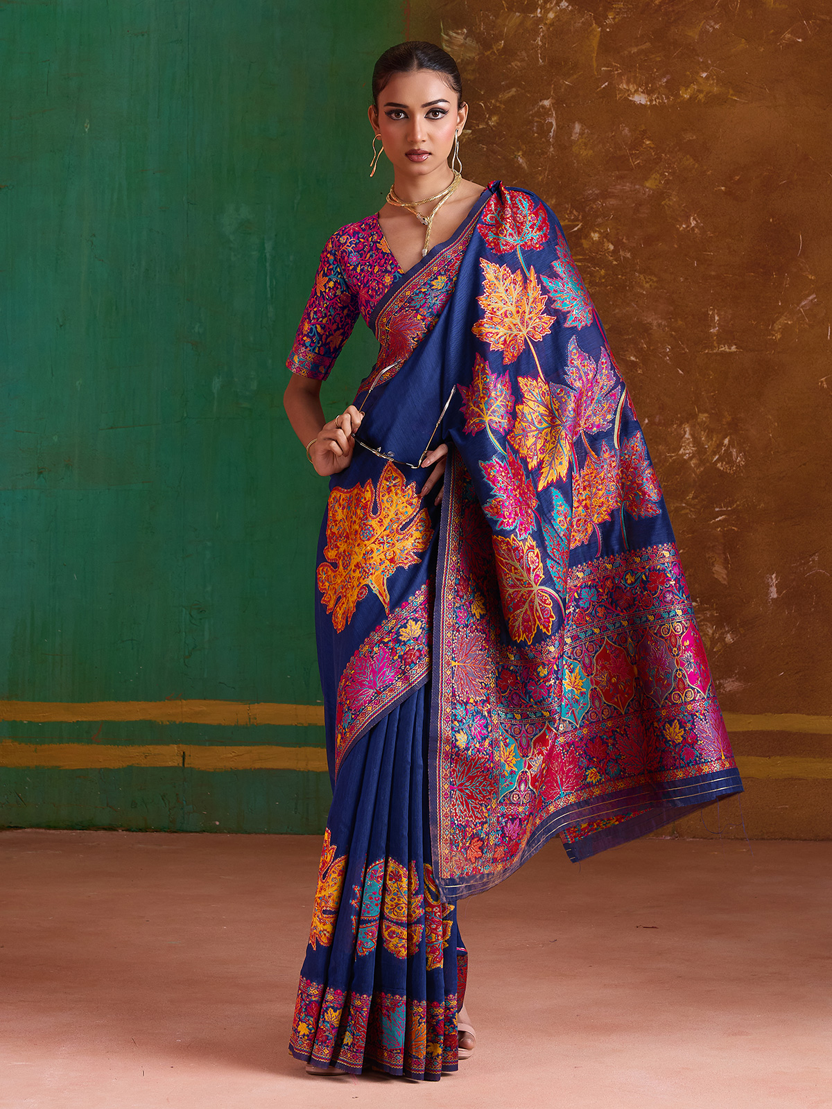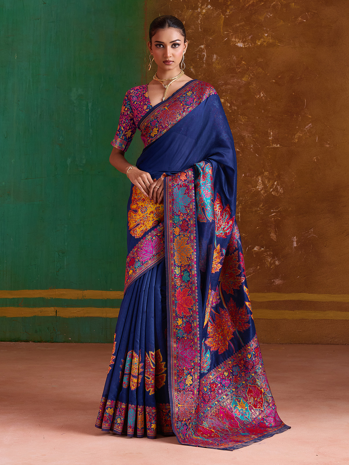 This women saree is crafted from soft modal cotton with refined pashmina weaving and elegant embroidery work. Designed for festive and partywear occasions, it offers a graceful drape and comfortable feel. The saree comes with a matching unstitched blouse, allowing customized stitching for a perfect traditional look.