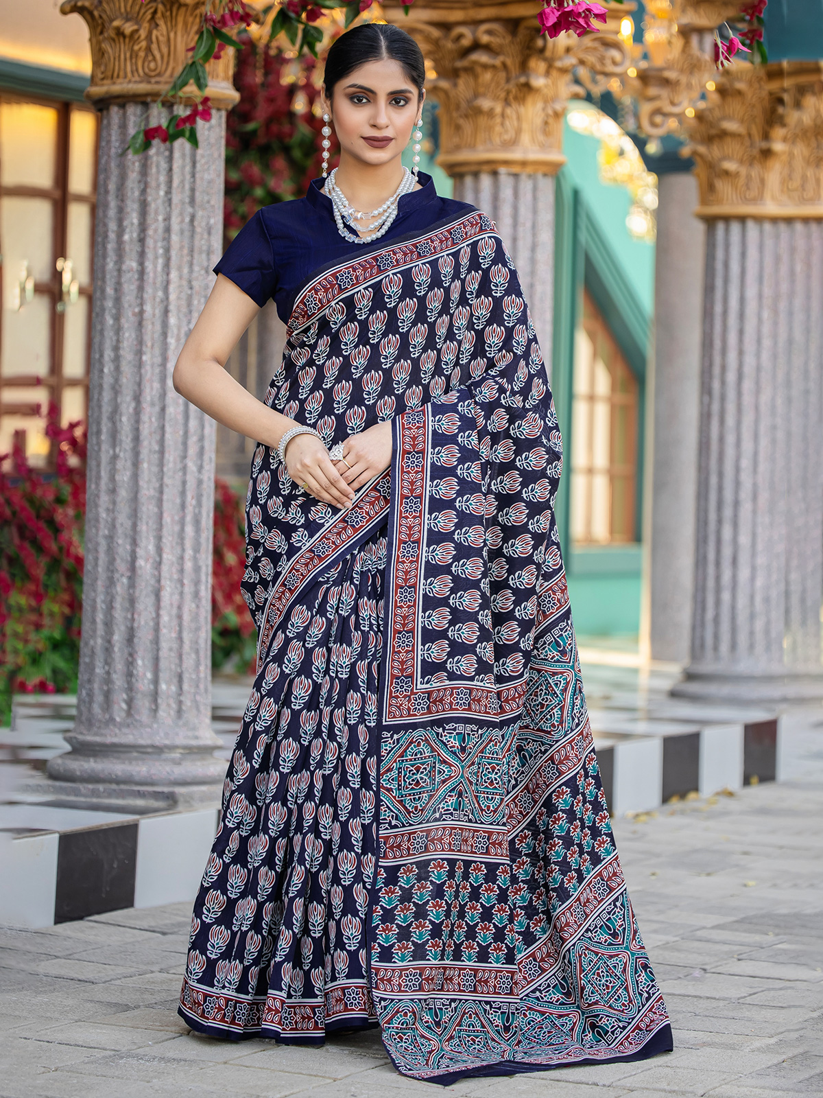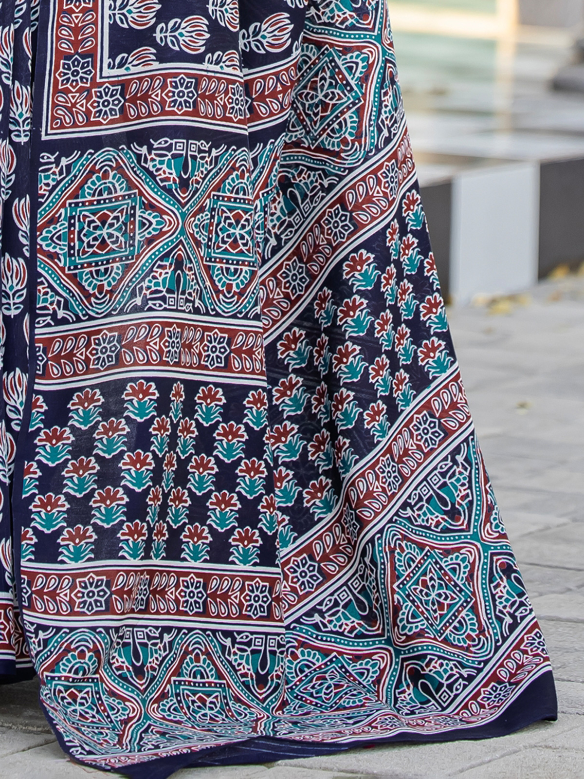 Navy Printed Bhagalpuri Silk Festive Wear Saree