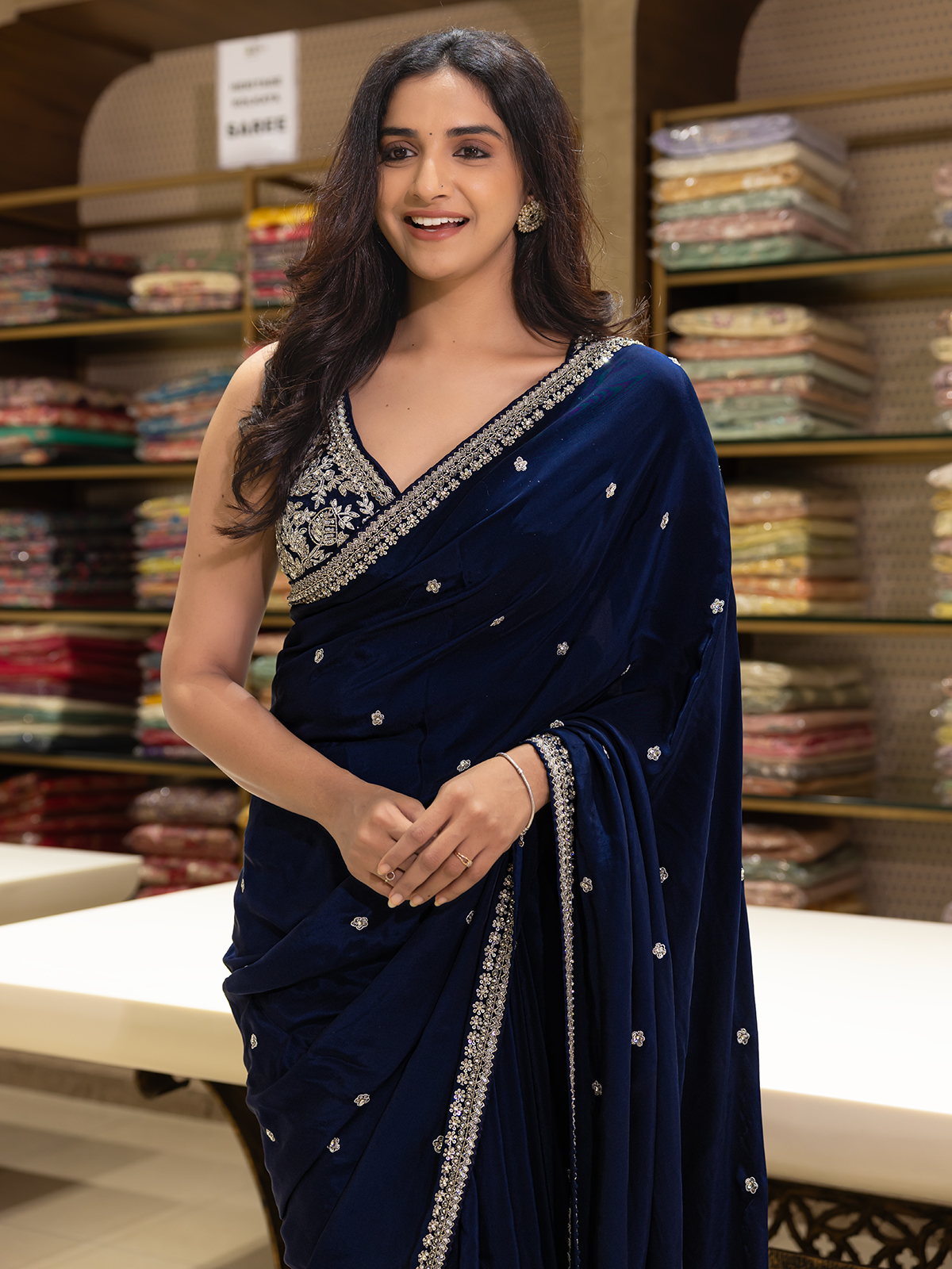 This gorgeous navy saree will add a elegance to any special occasion. This saree, which is made of opulent silk, is embellished with a sequins, beads, thread and cutdana, giving your appearance a glamorous touch. It has an unstitched blouse piece and a rich border that contrasts well with the saree's delicate tone. The blouse shown in the photo is only for the photoshoot purpose.