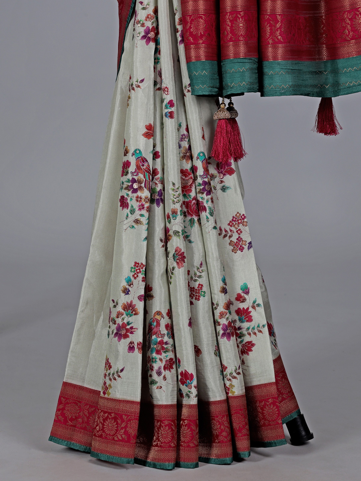 Off White Semi Pashmina Silk Saree With Print