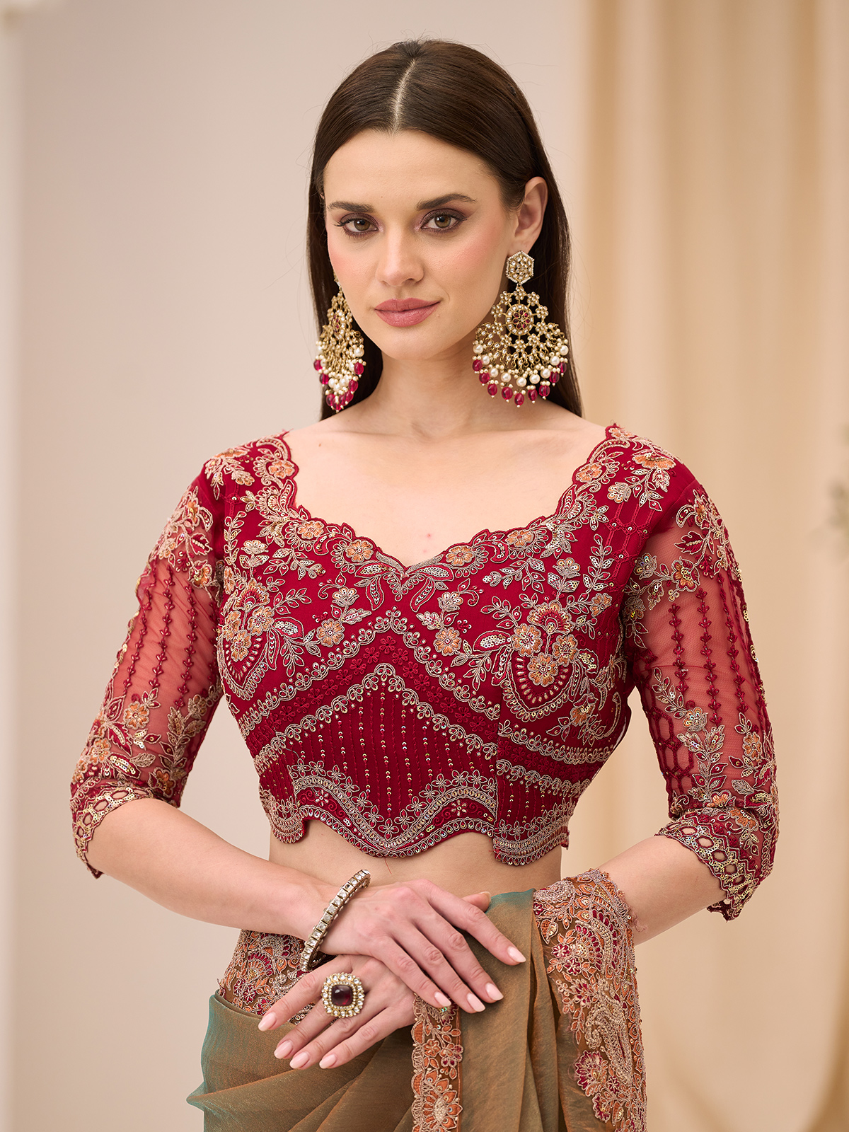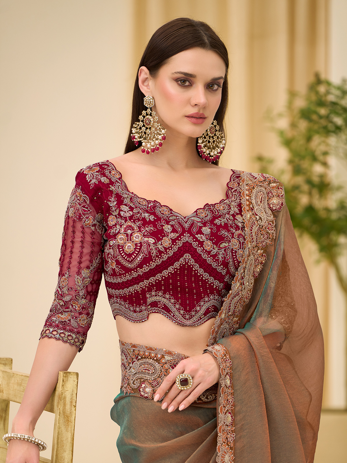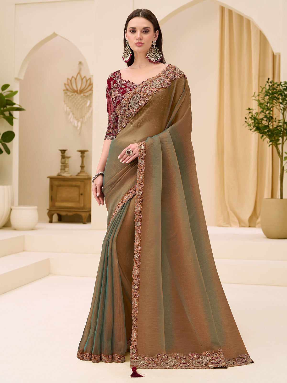 Olive Green Dual Toned Festive Wear Saree In Georgette Tissue