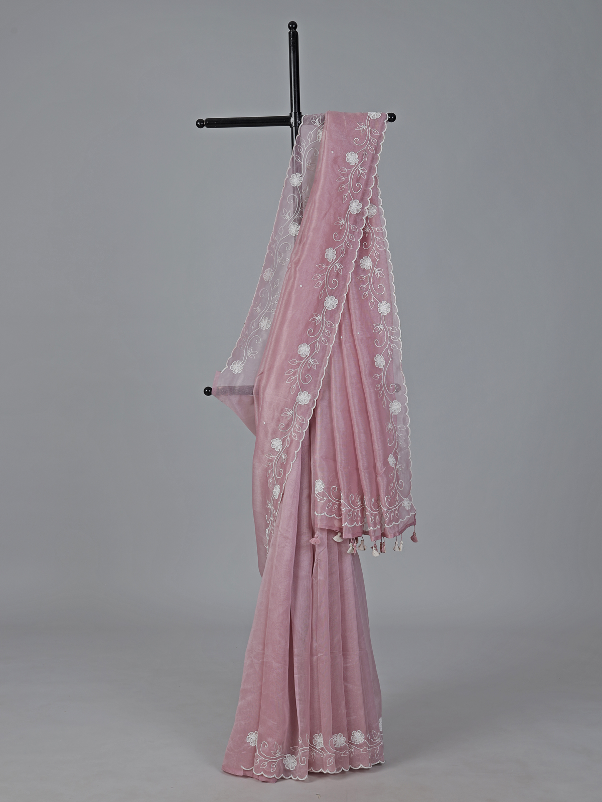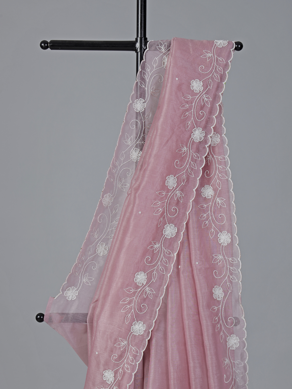 Onion Pink Organza Thread Work Festive Saree Charm