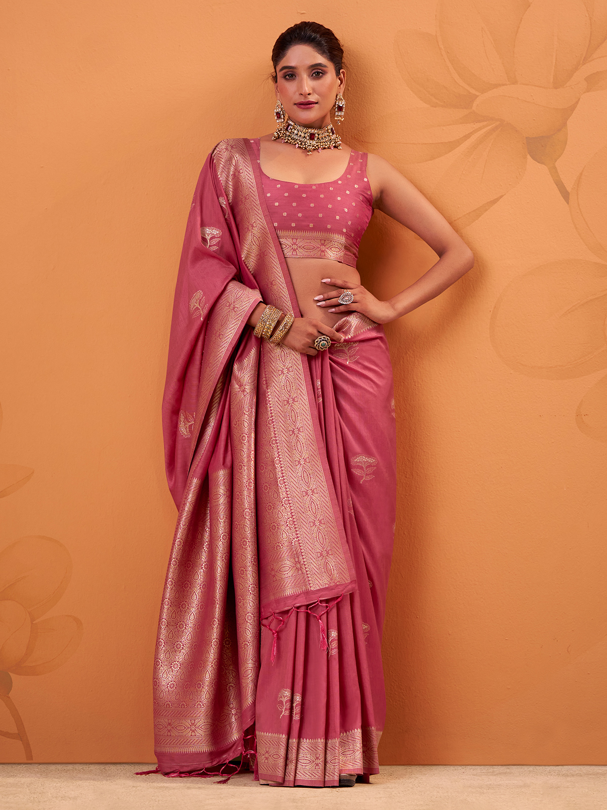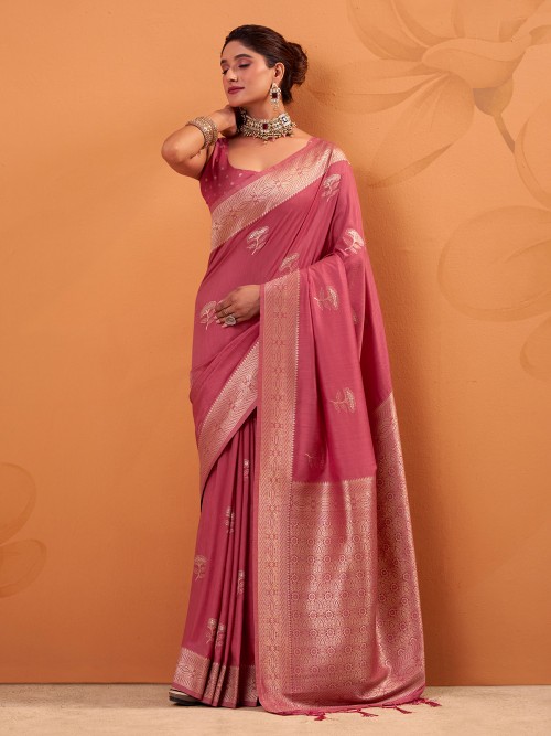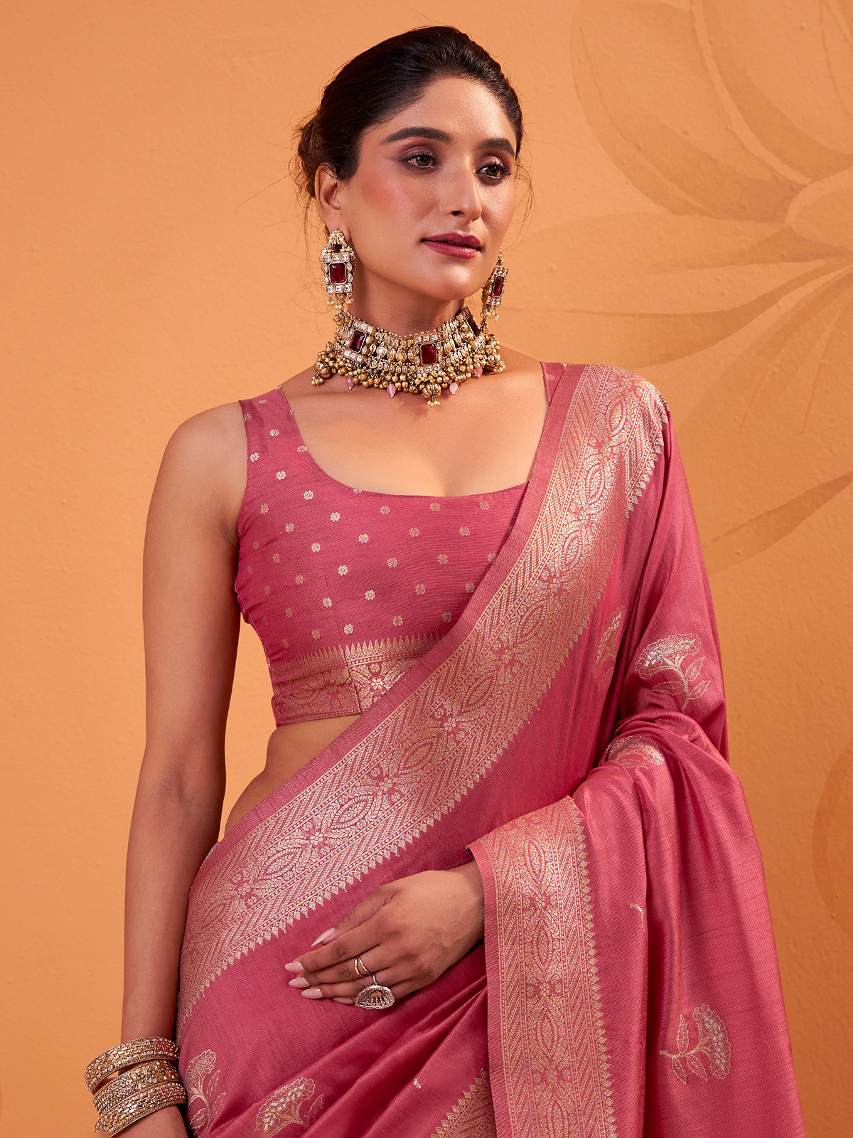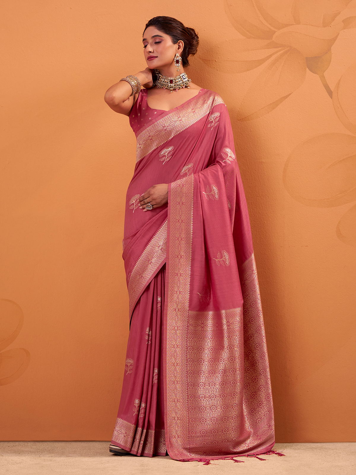 Onion Pink Tusser Silk Saree With Radiant Zari Touch
