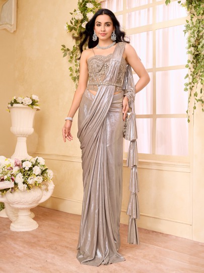 Pastel Beige Lycra Ready To Wear Saree