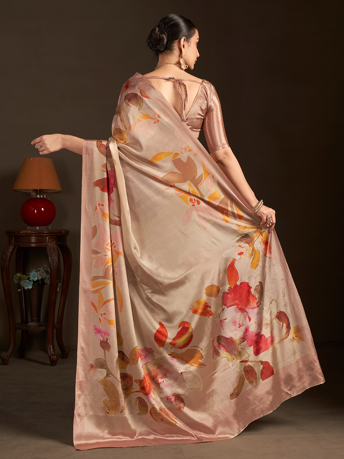 Pastel Beige Ready To Wear Silk Crepe Saree