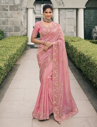 Pastel Pink Tissue Silk Saree With Gentle Elegance