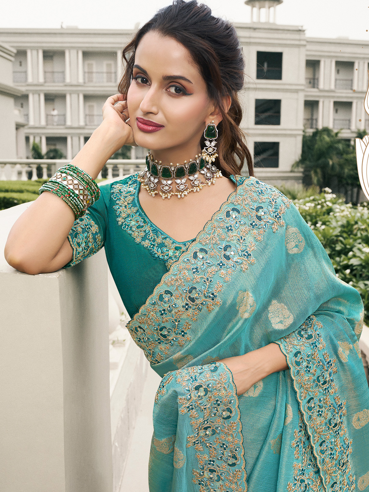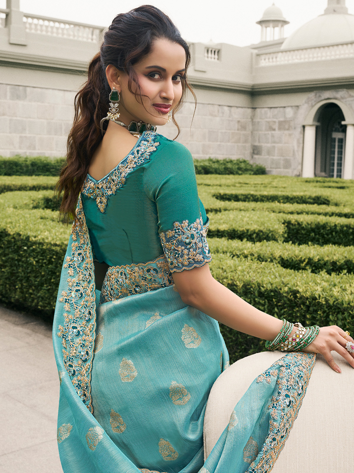 Pastel Sky Blue Tissue Silk Saree With Delicate Detailing