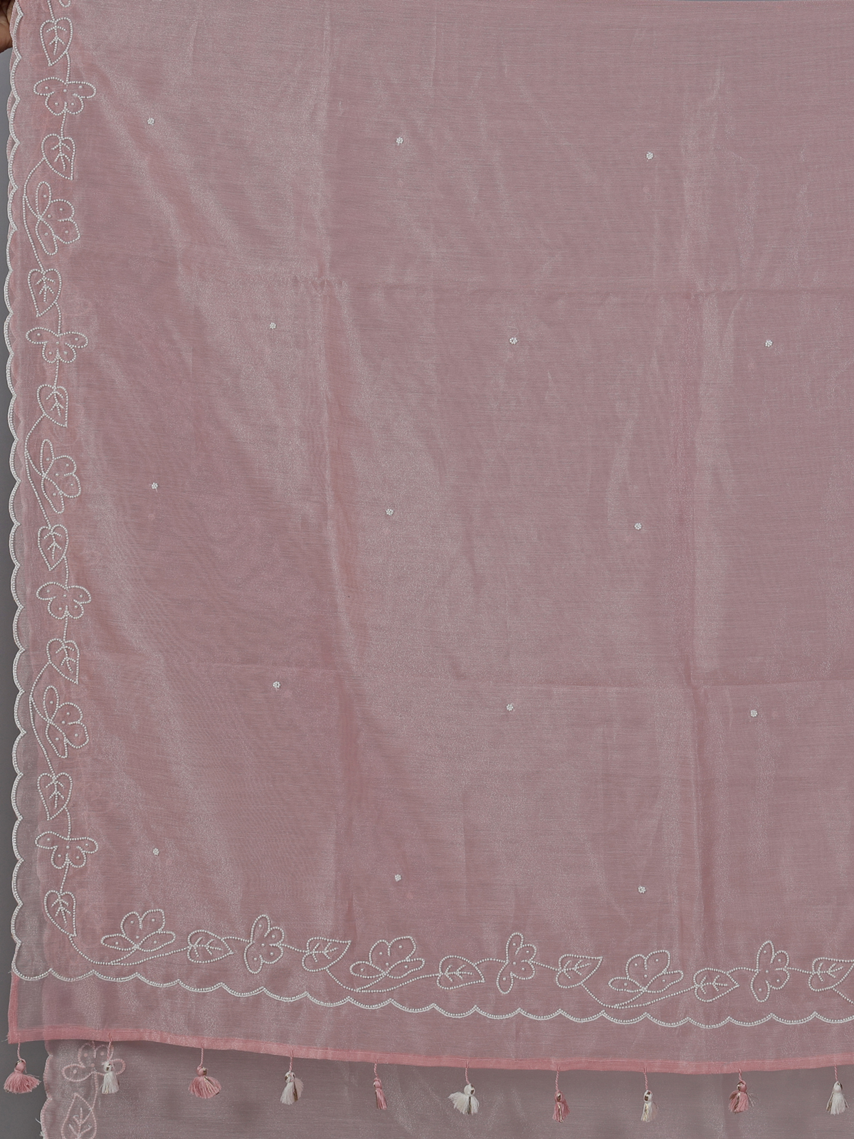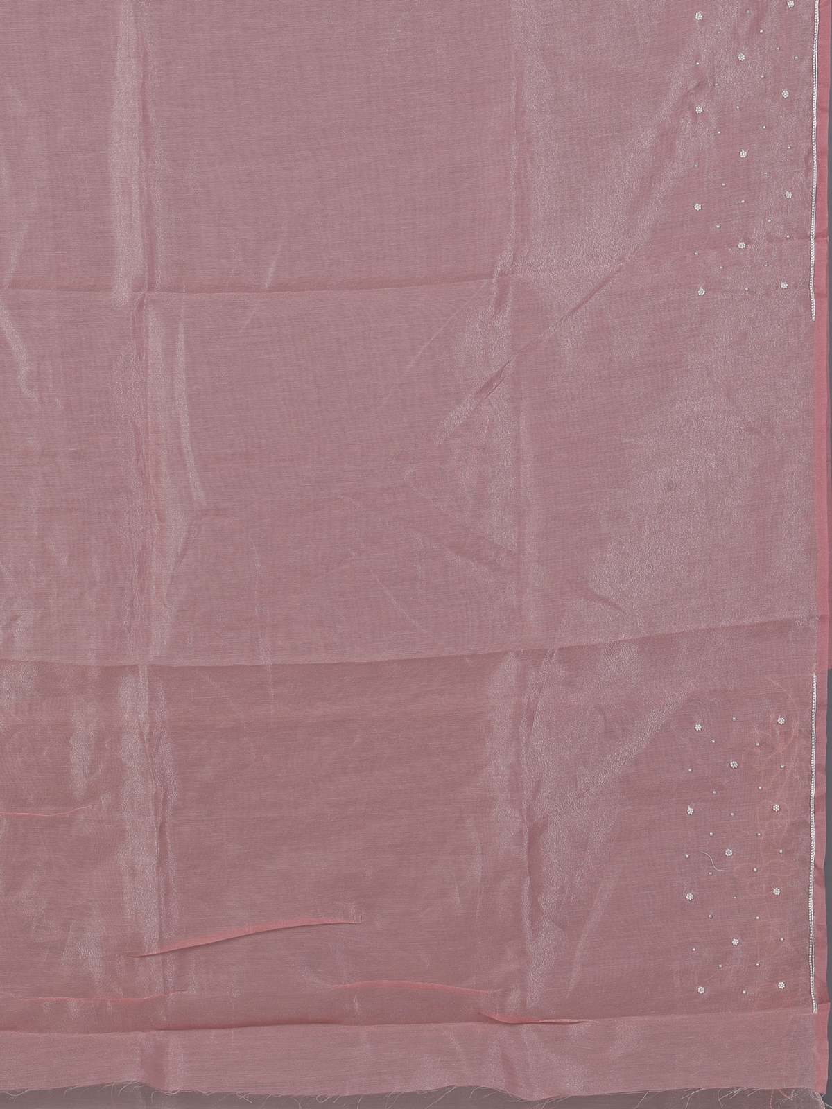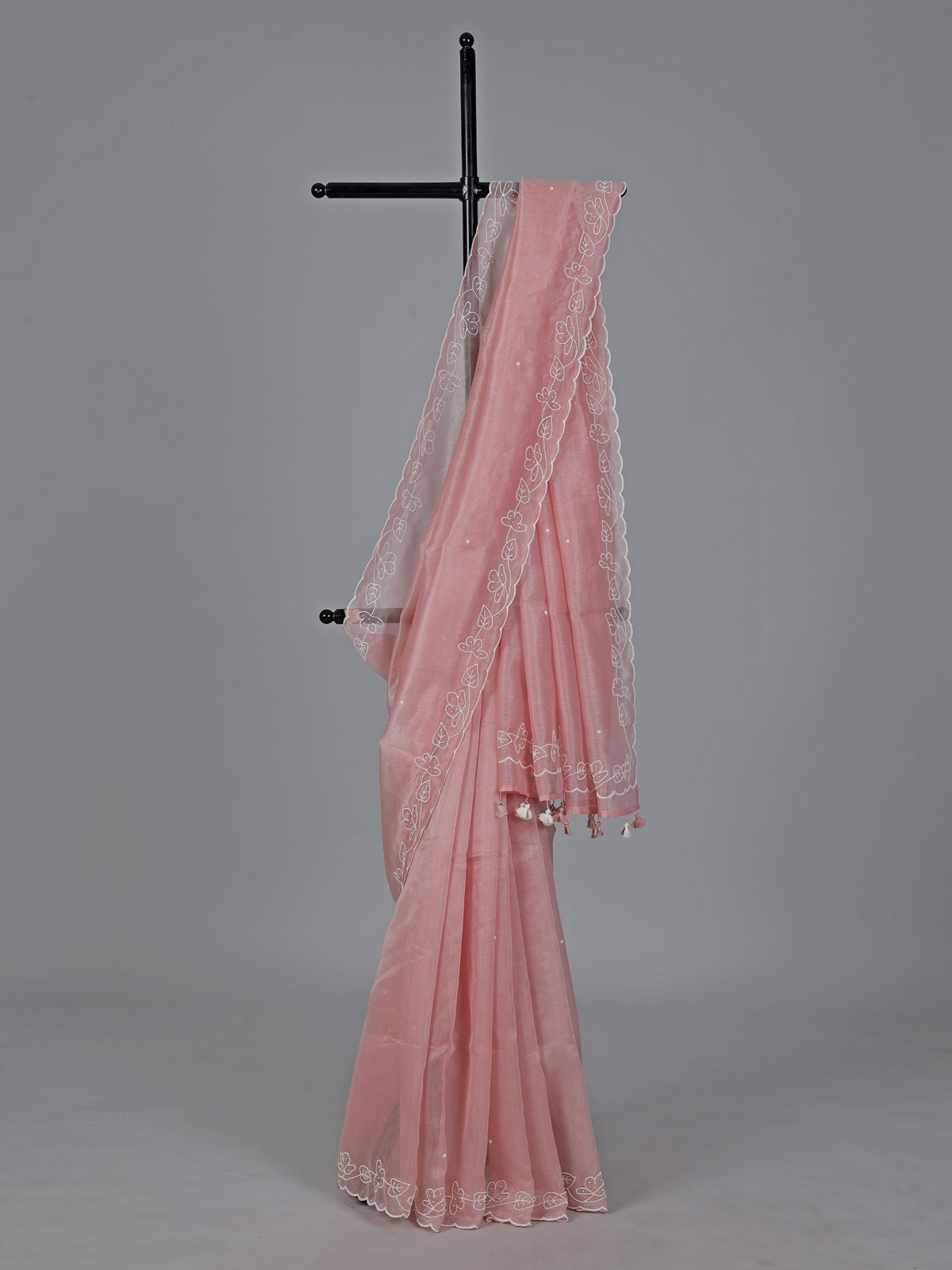 Soft as a blooming dawn peach semi organza saree is enhanced with intricate thread and bead detailing. The gentle shimmer and fluid drape create a romantic festive aura. Ideal for receptions and celebrations. It is paired with an unstitched blouse piece for a custom tailored elegant finish.