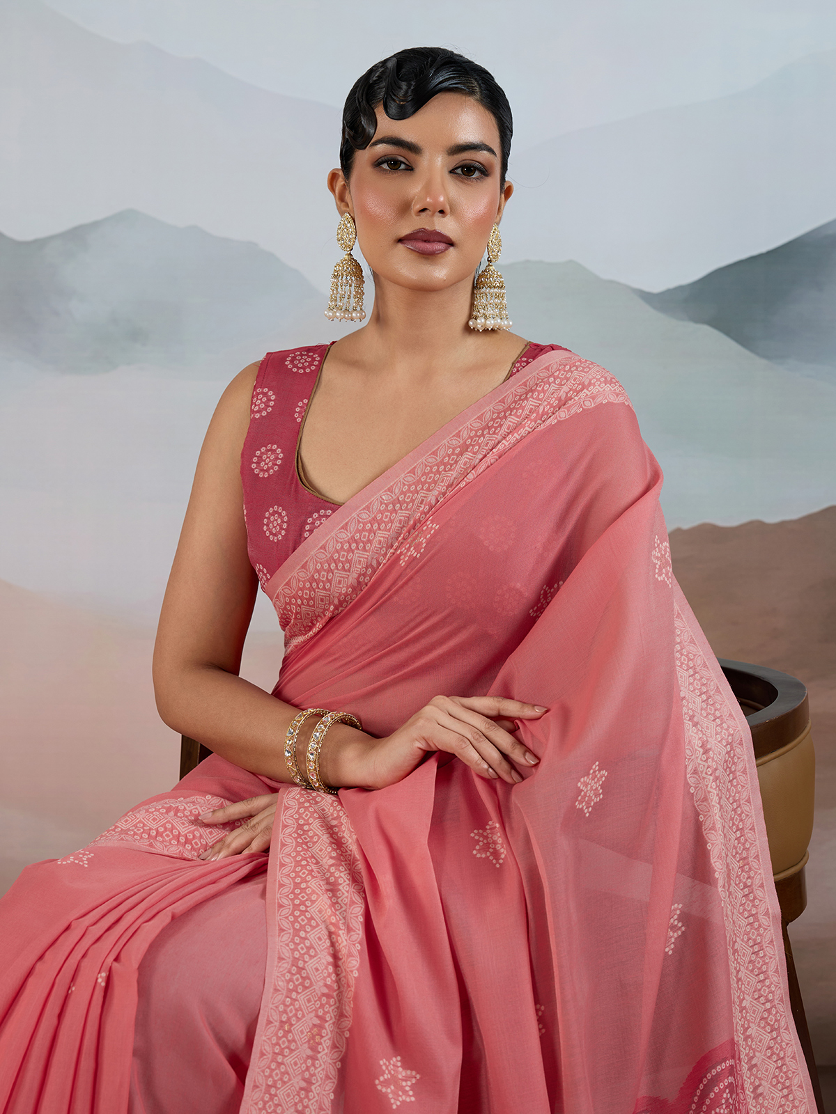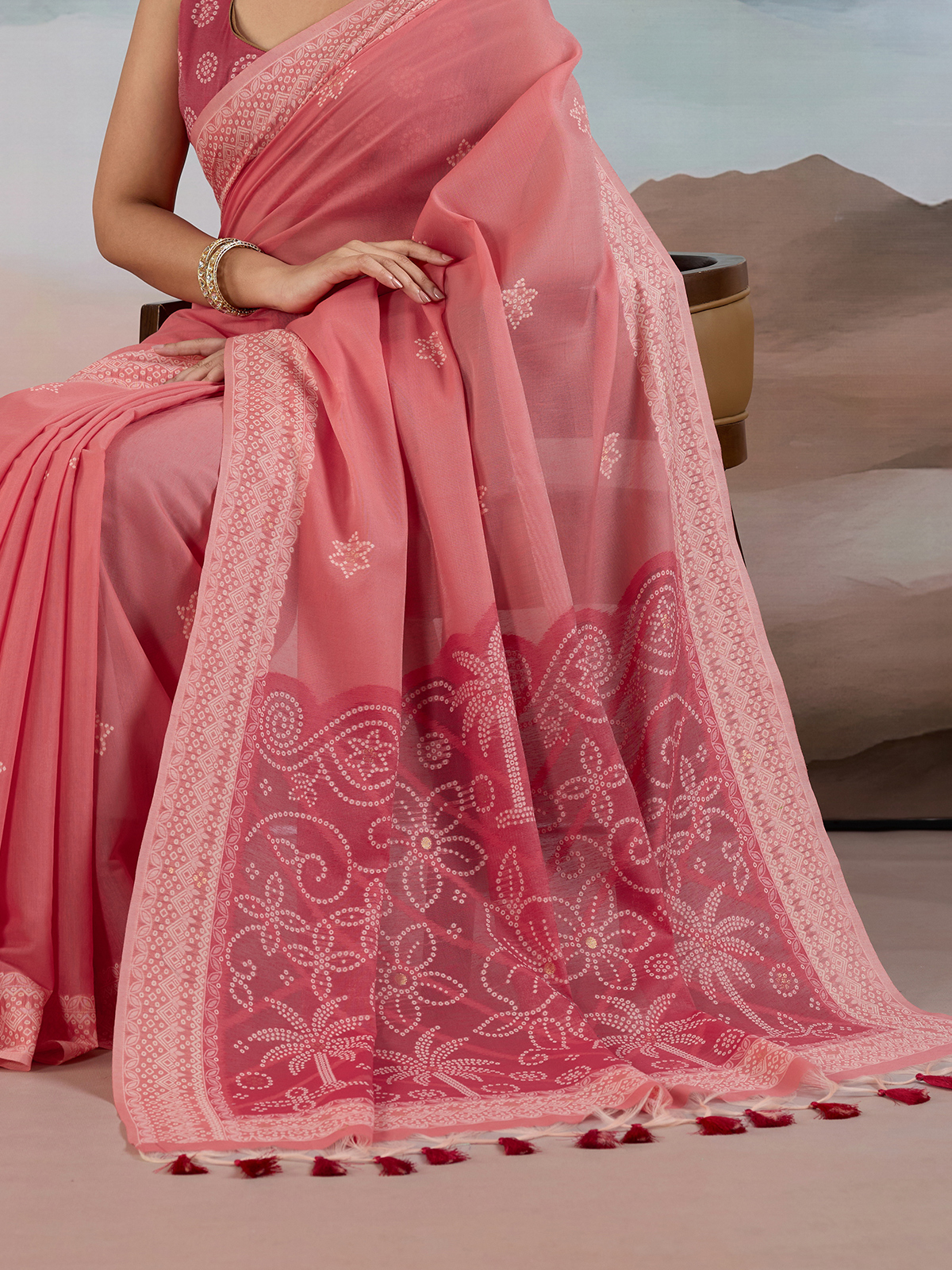 Pink Bandhej Inspired Viscose Cotton Saree