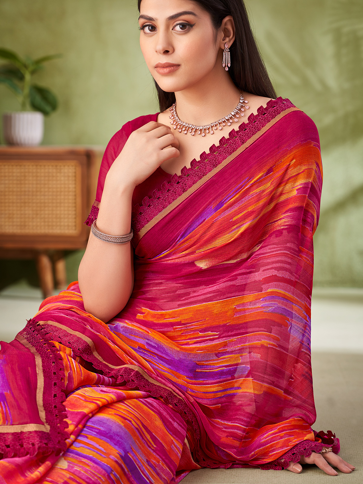 Pink Elegant Geometric Georgette Saree