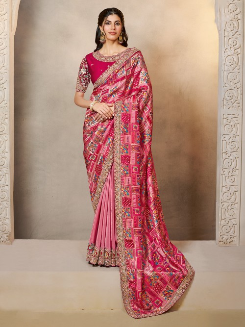 Pink Gajji Jacquard Silk Saree Of Printed Splendor