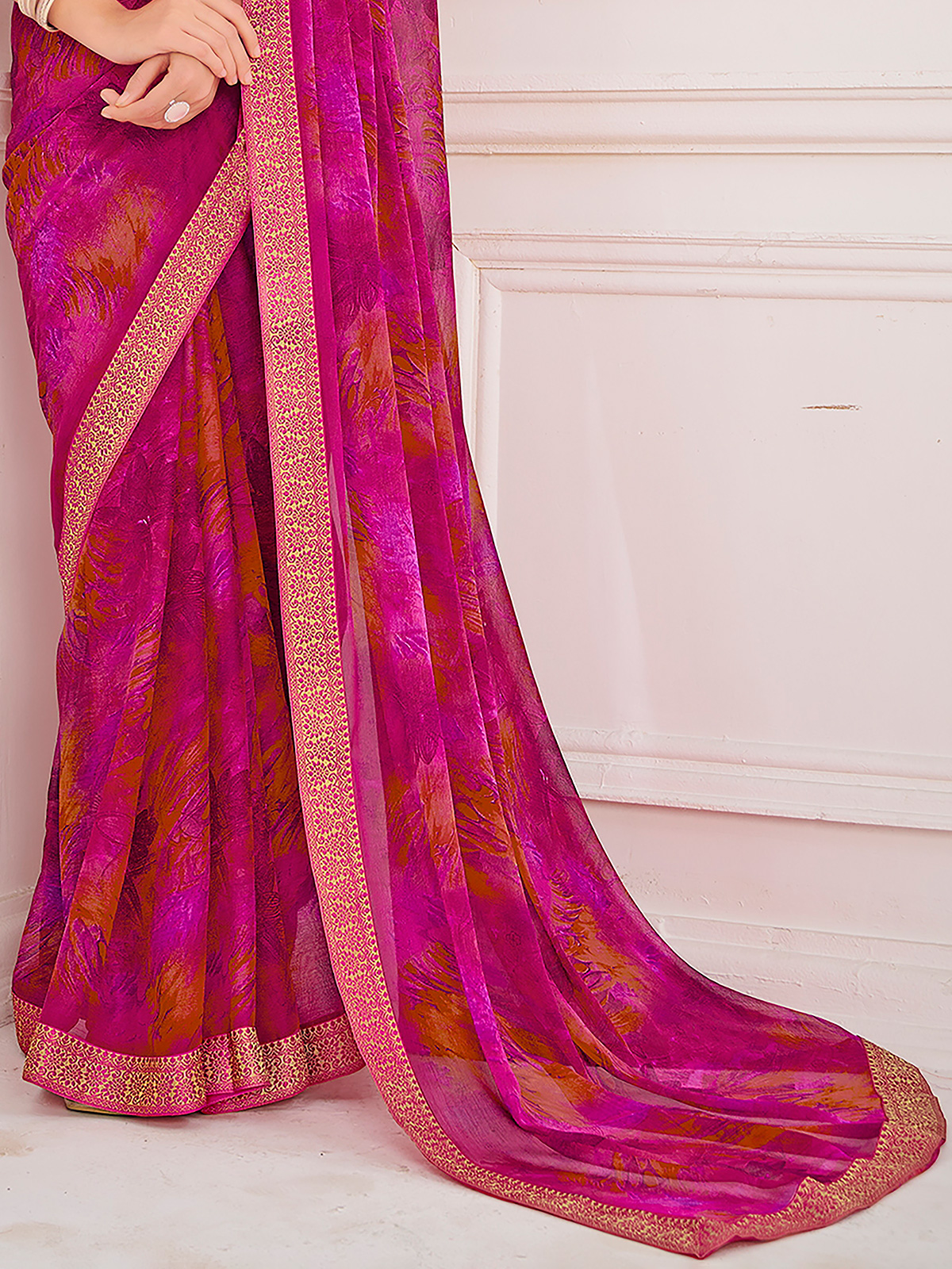 Pink Printed Zari Work Georgette Saree