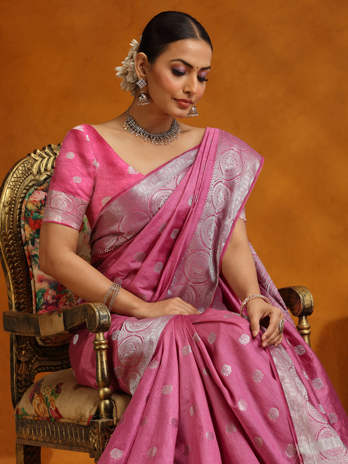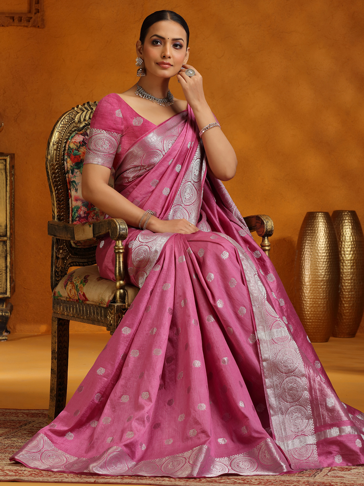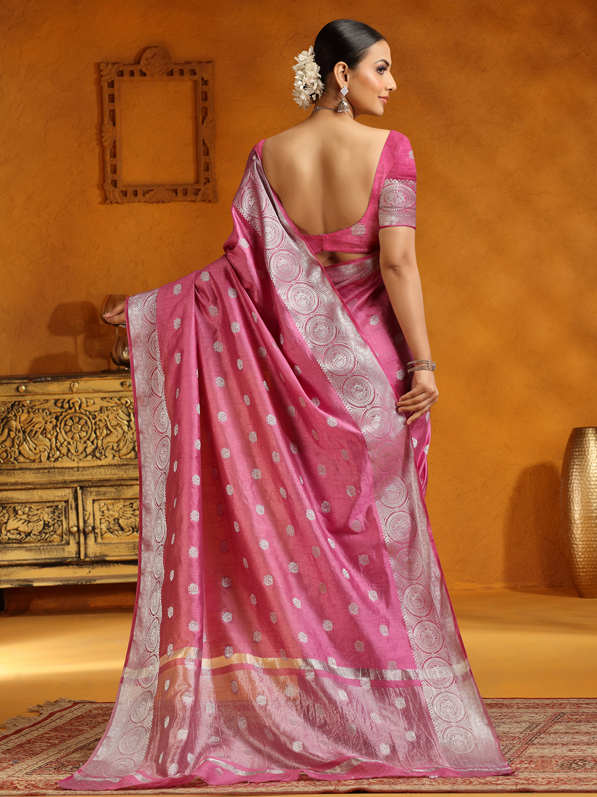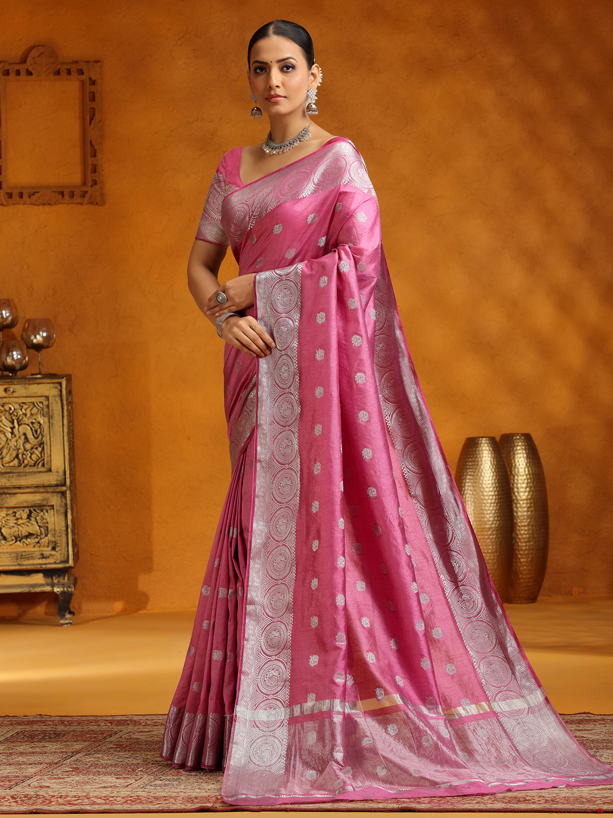 Add this lime green silk saree to your wardrobe for cultural events. Detailed thread weaving enhances its beauty. Comes with unstitched blouse.