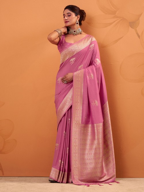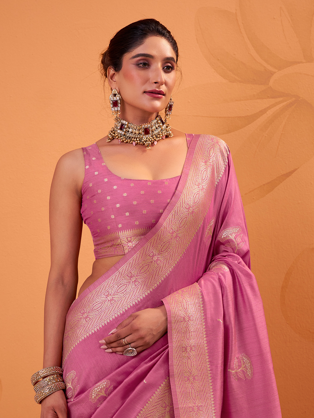 Pink Tusser Silk Saree With Lustrous Zari Highlights