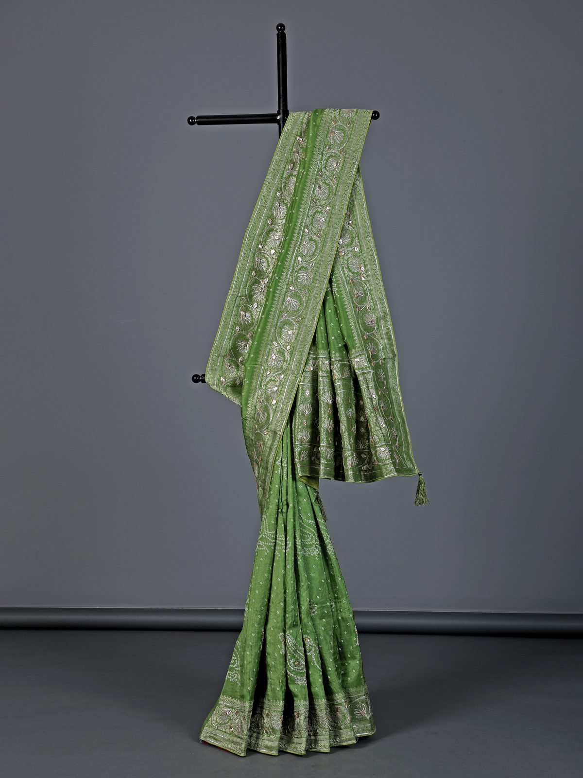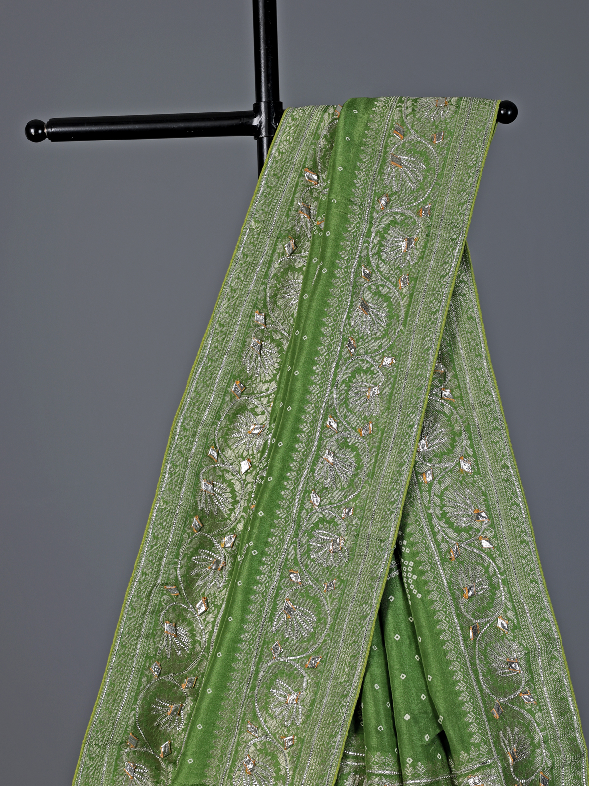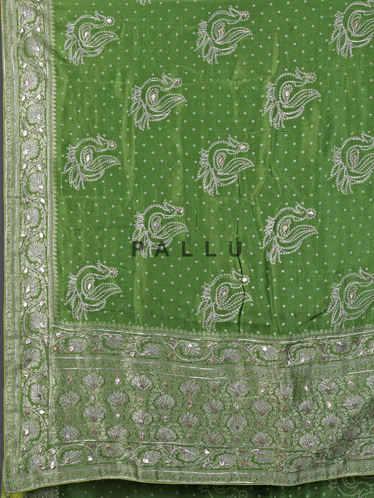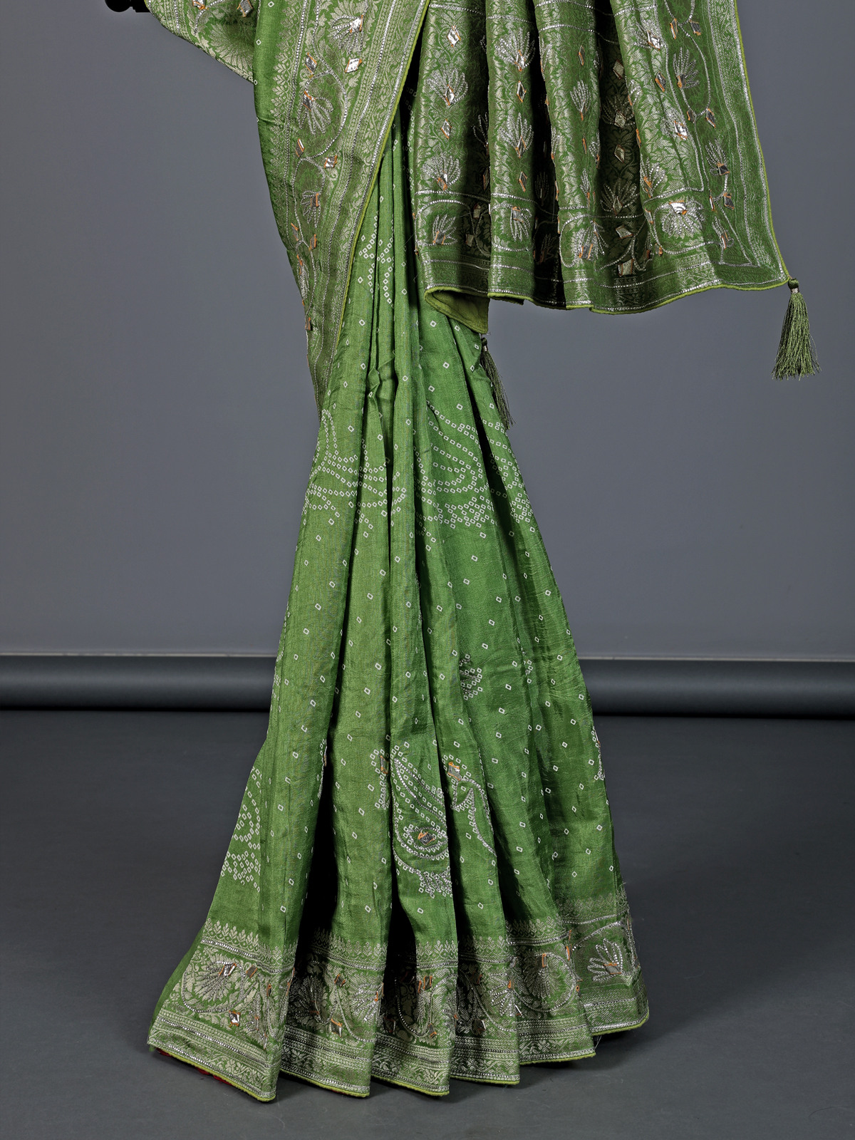 Pista Green Bandhej Silk Gota And Zari Festive Saree