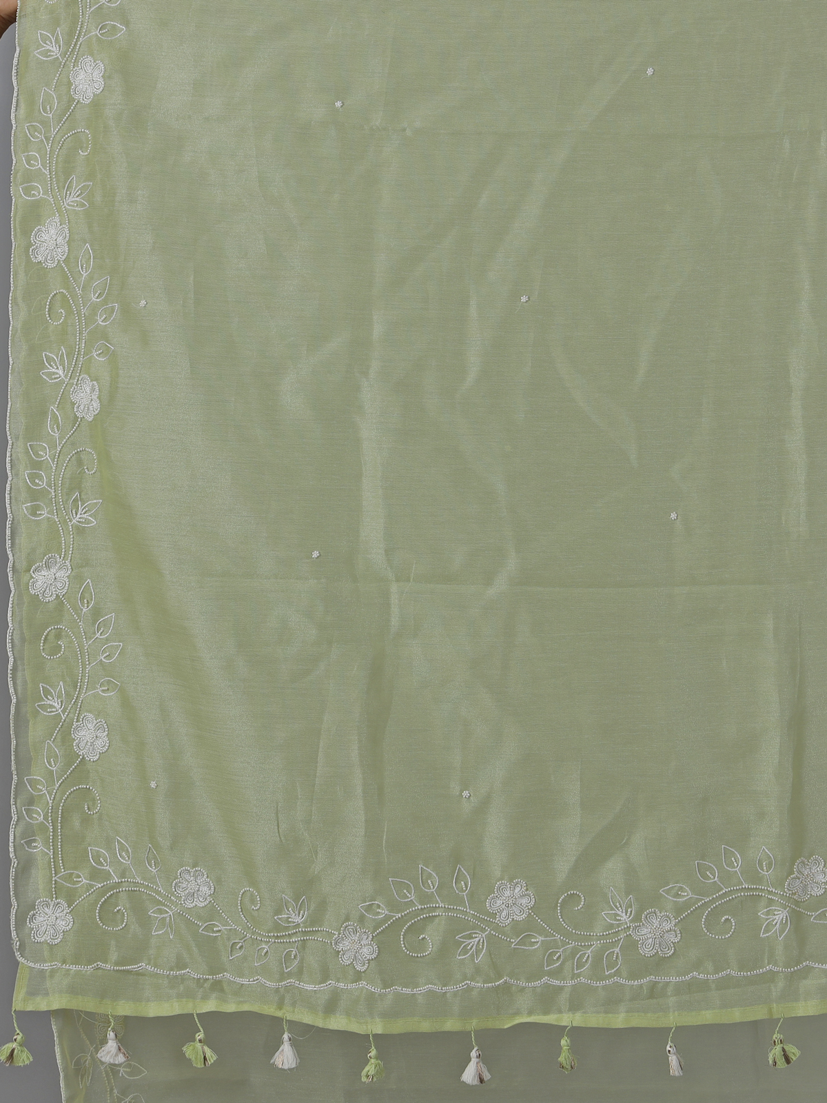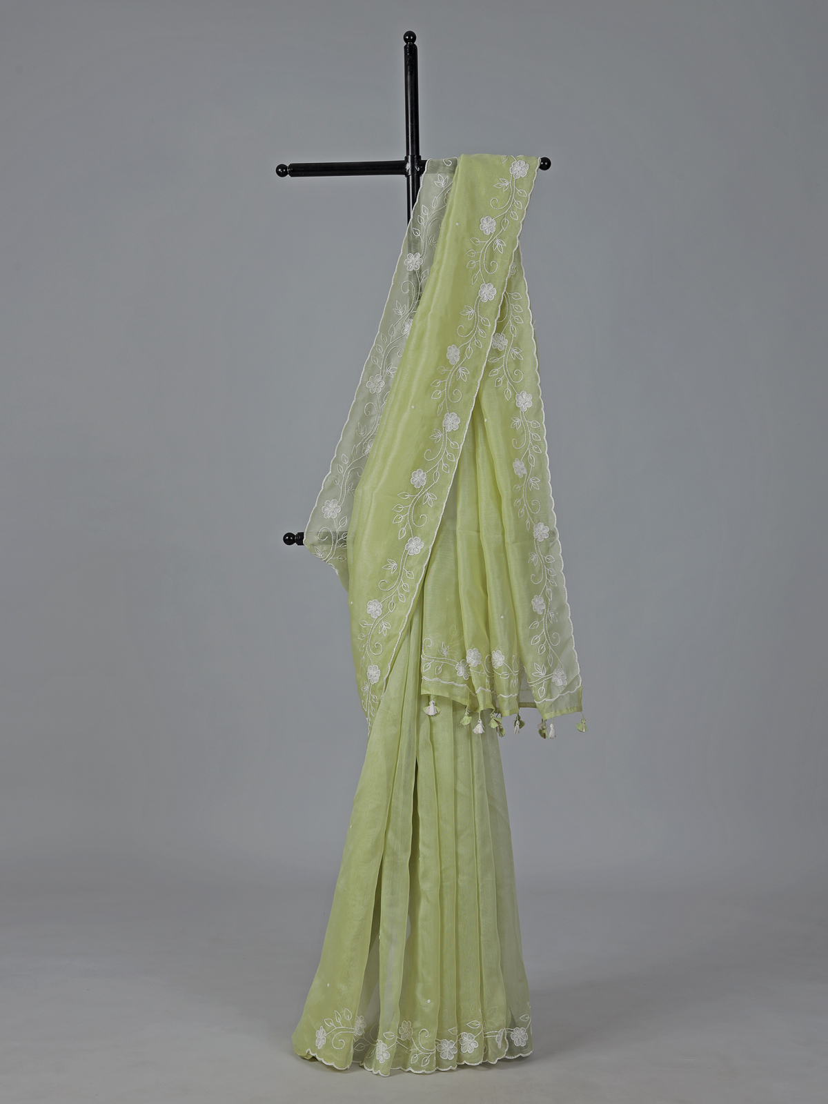 Pista Green Organza Thread Work Festive Saree Elegance