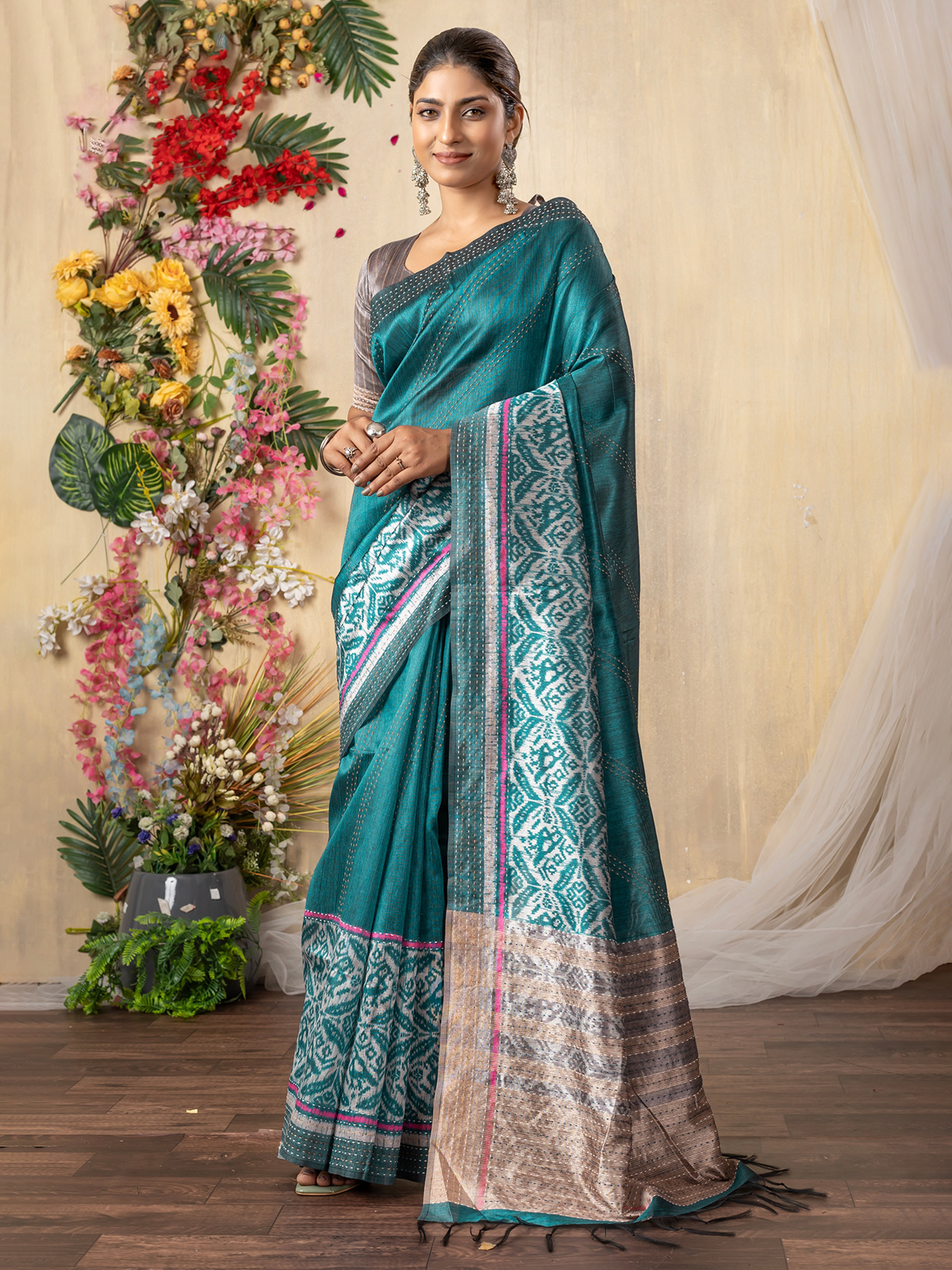 Elevate your style with this pastel blue synthetic saree, featuring a bold print and a luxuriously soft texture. Designed for both comfort and contemporary appeal, it comes with an unstitched blouse piece for a personalized fit.