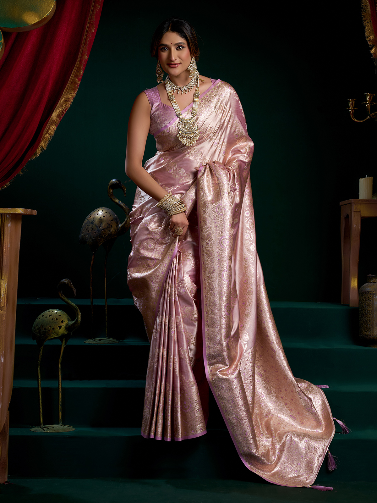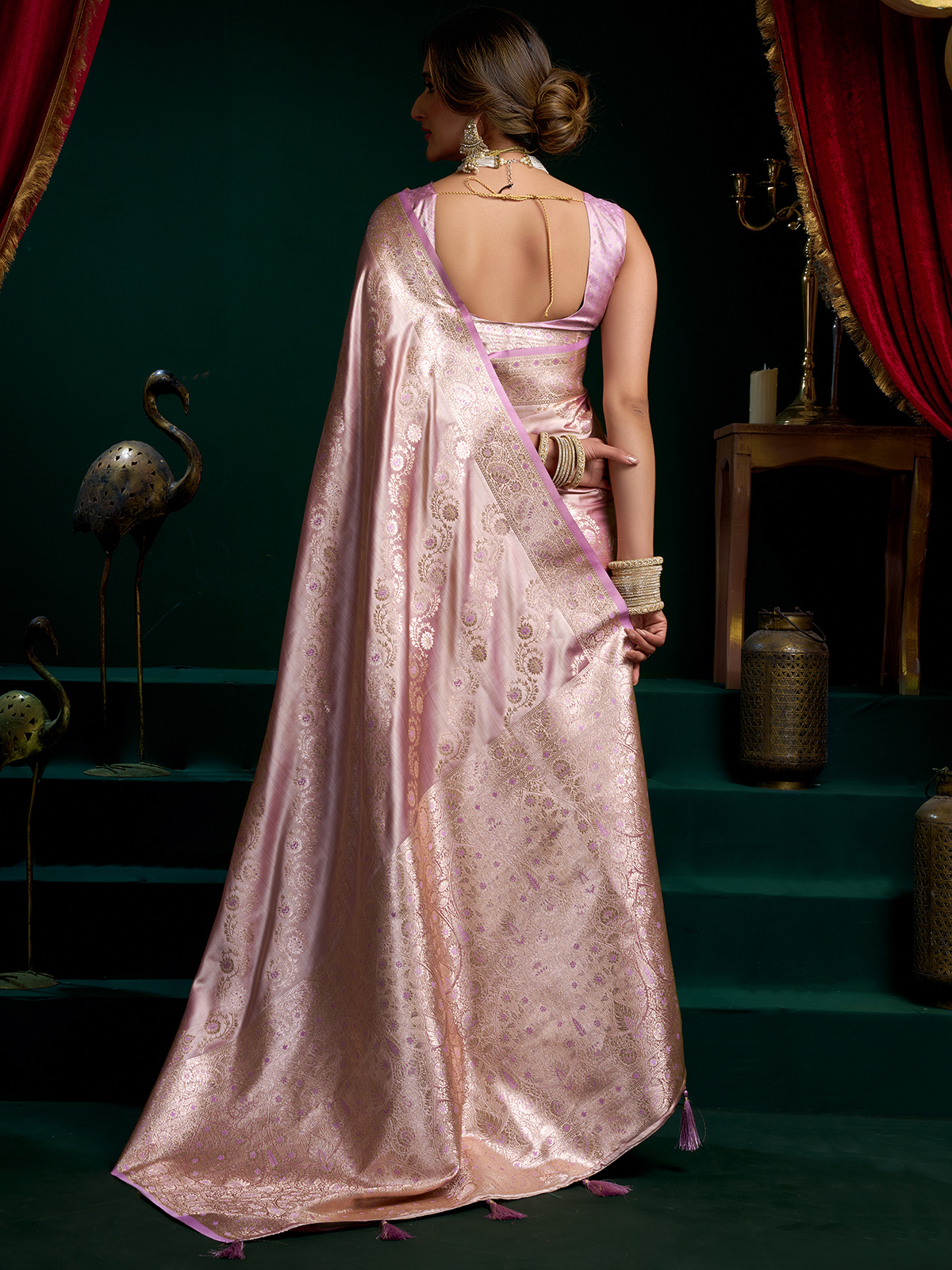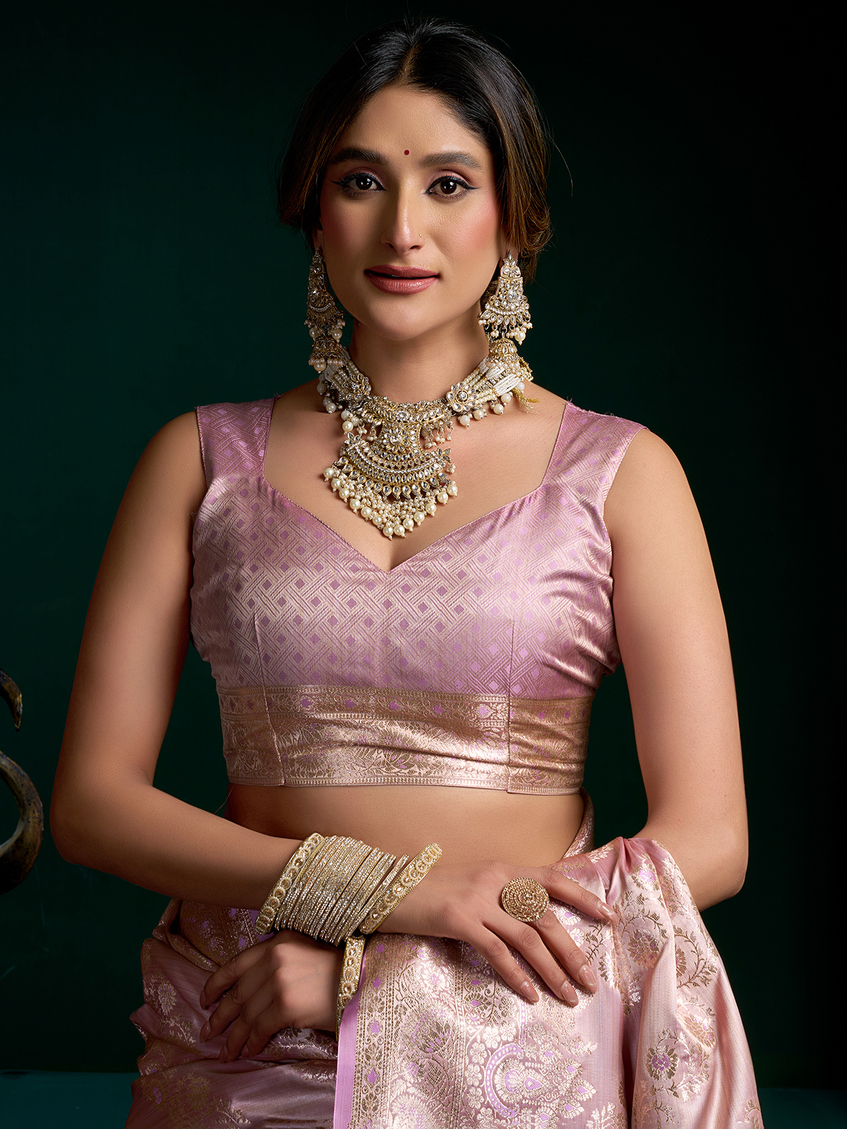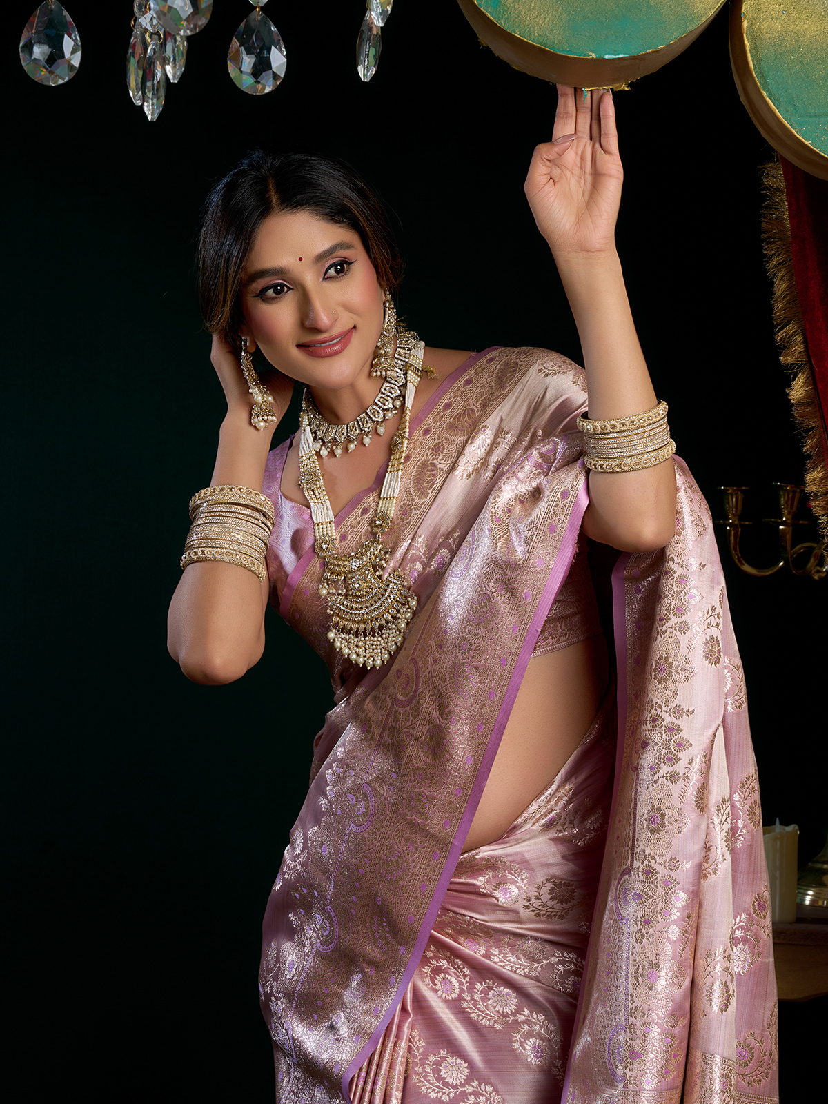 The purple banarasi silk saree offers easy draping and is suitable for every occasion. The elegant zari woven design gives a royal and graceful look. It comes with an unstitched blouse piece for a customized fit.