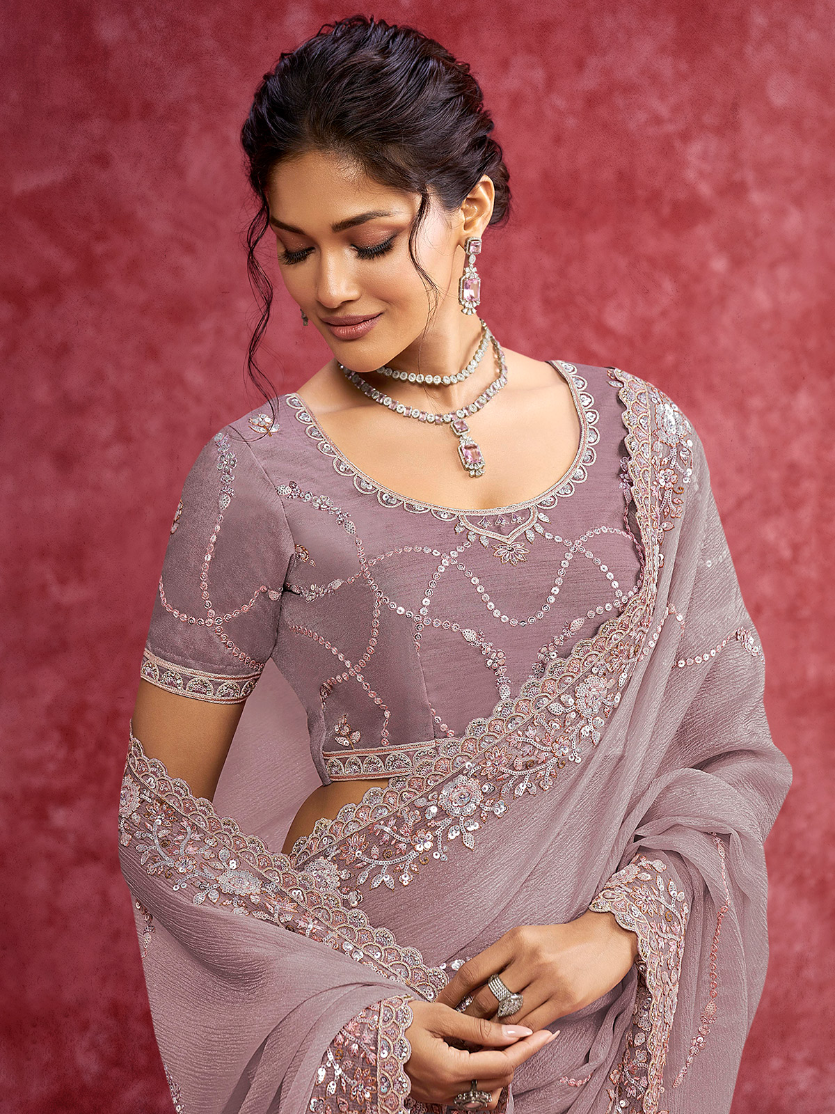 Purple Chiffon Saree Highlighted With Sequins For An Elegant Charm