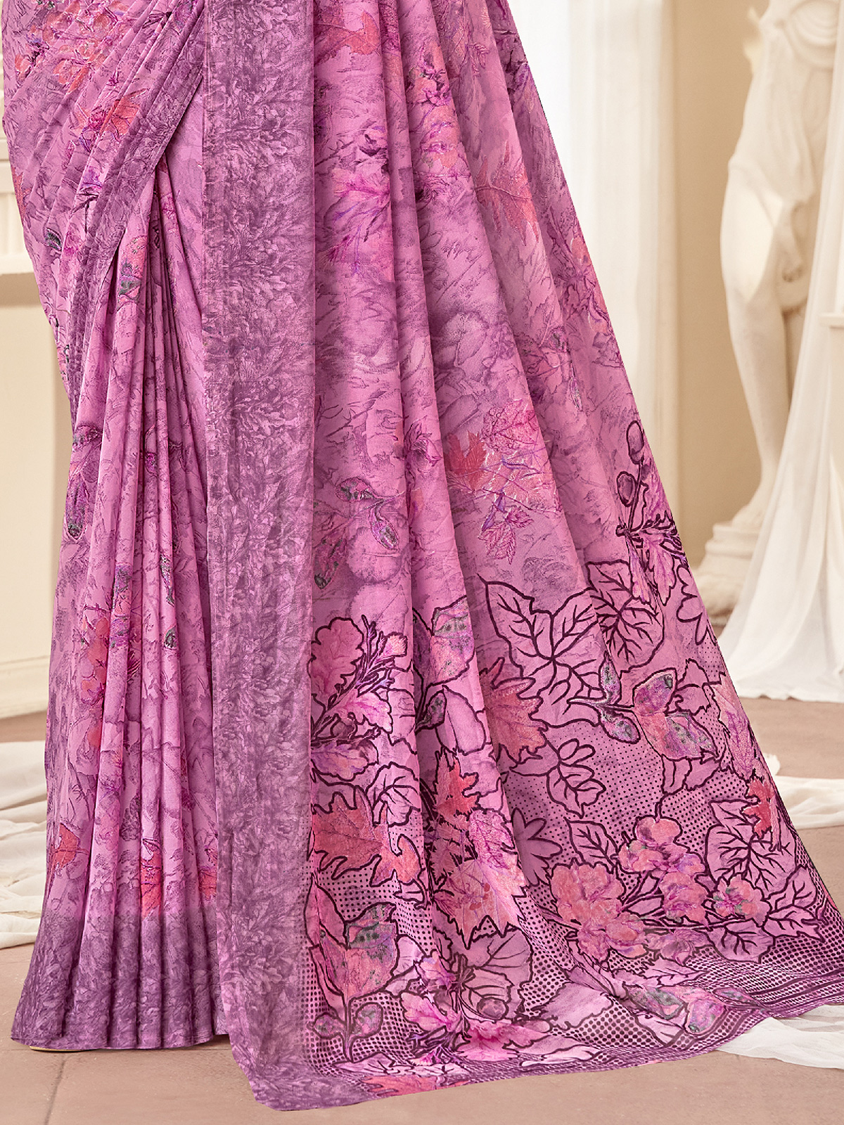 Purple Floral Shaded Georgette Saree With Print
