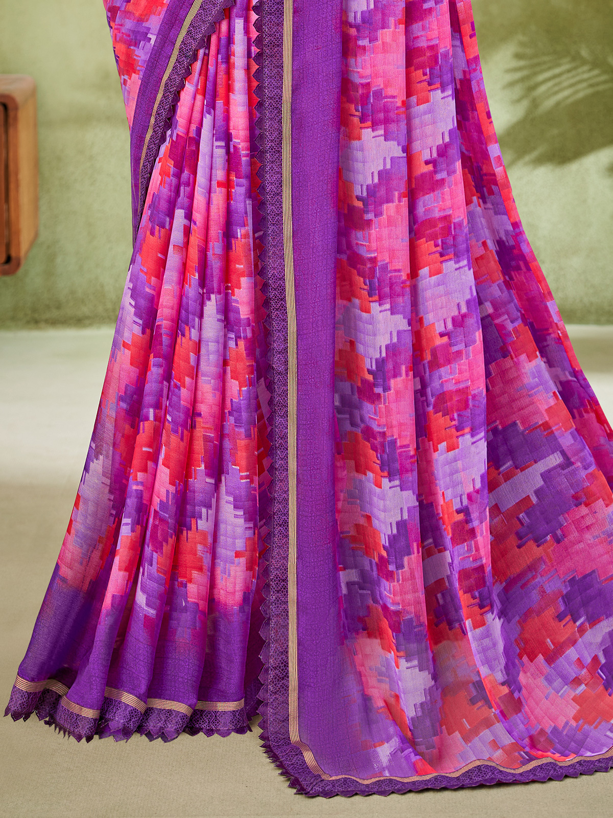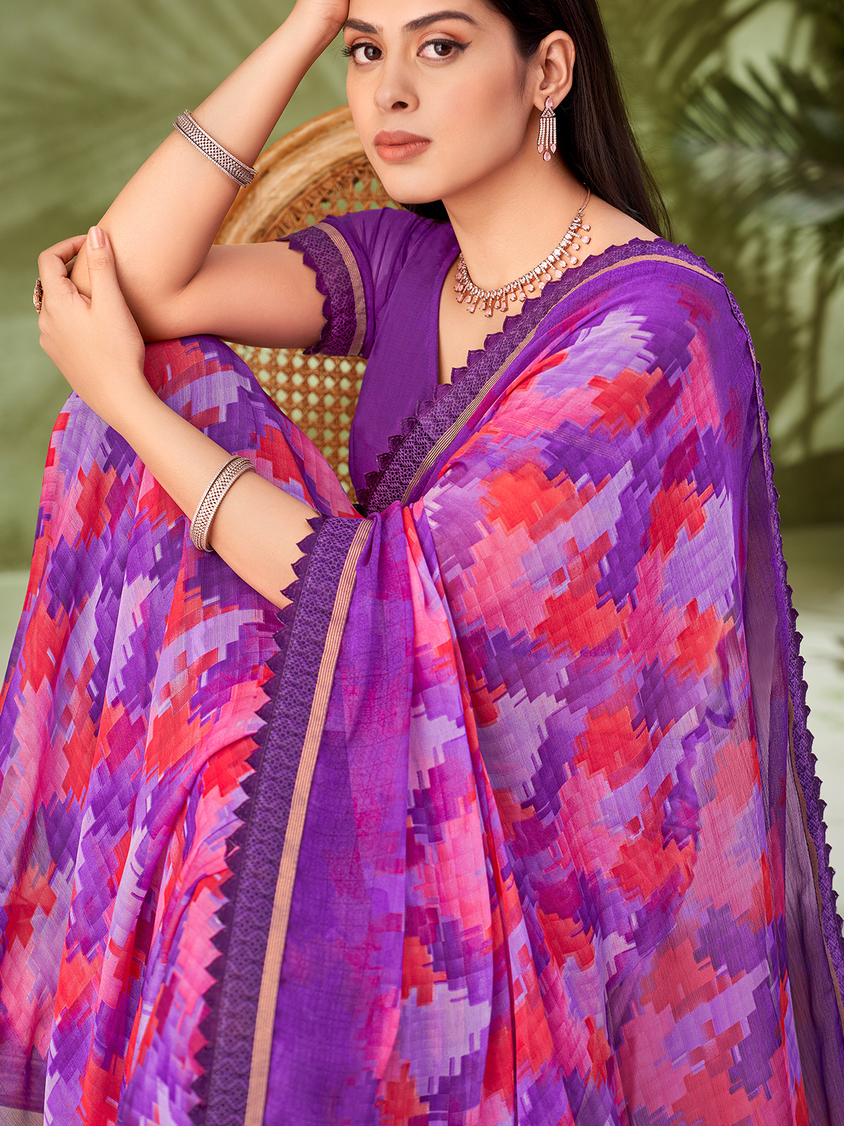 Purple Geometric Printed Georgette Saree