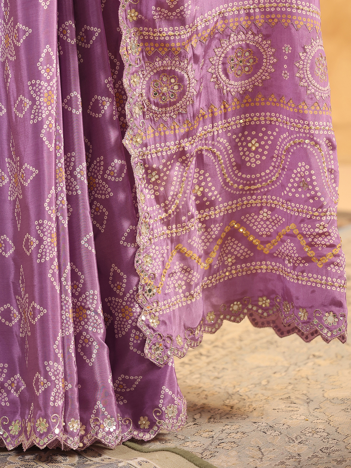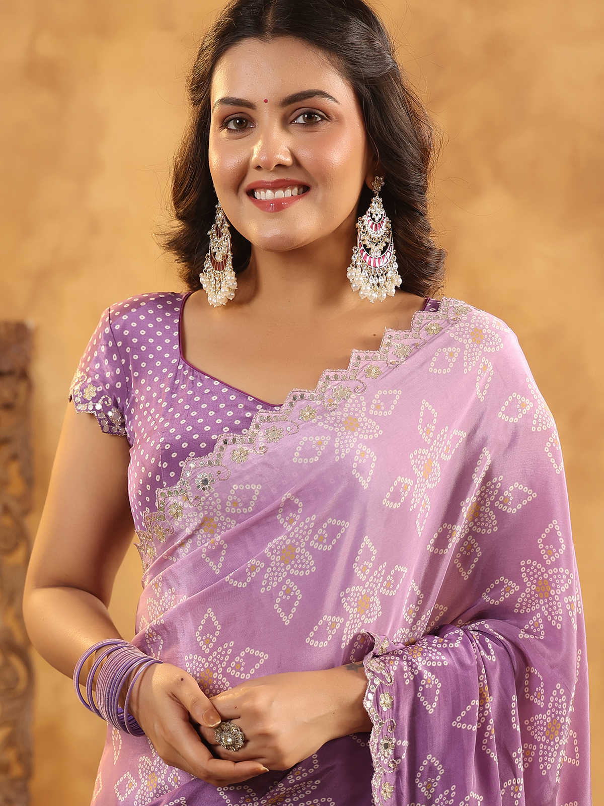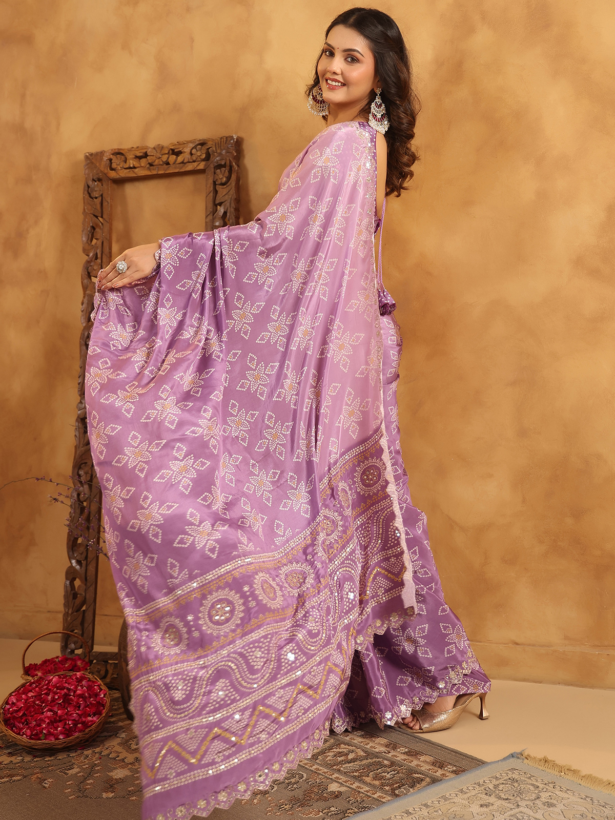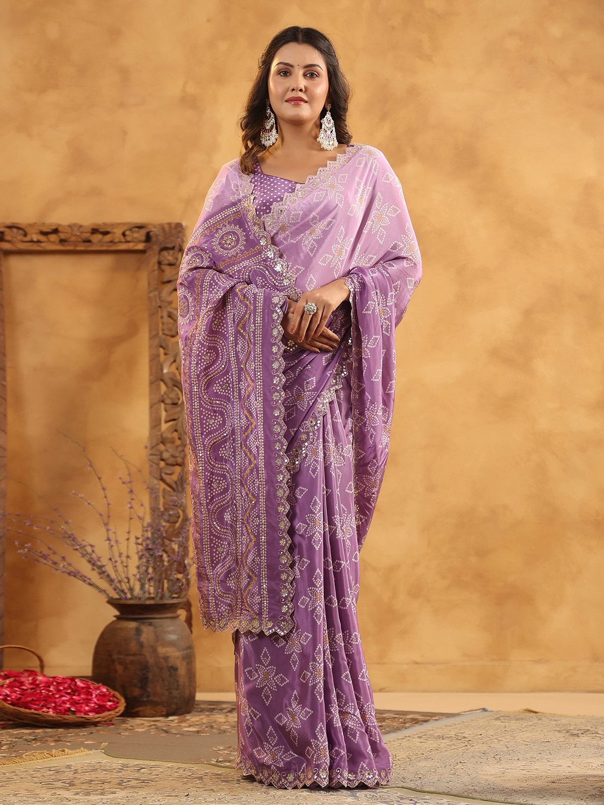 Purple Printed Silk Saree Suited For Festive Gatherings