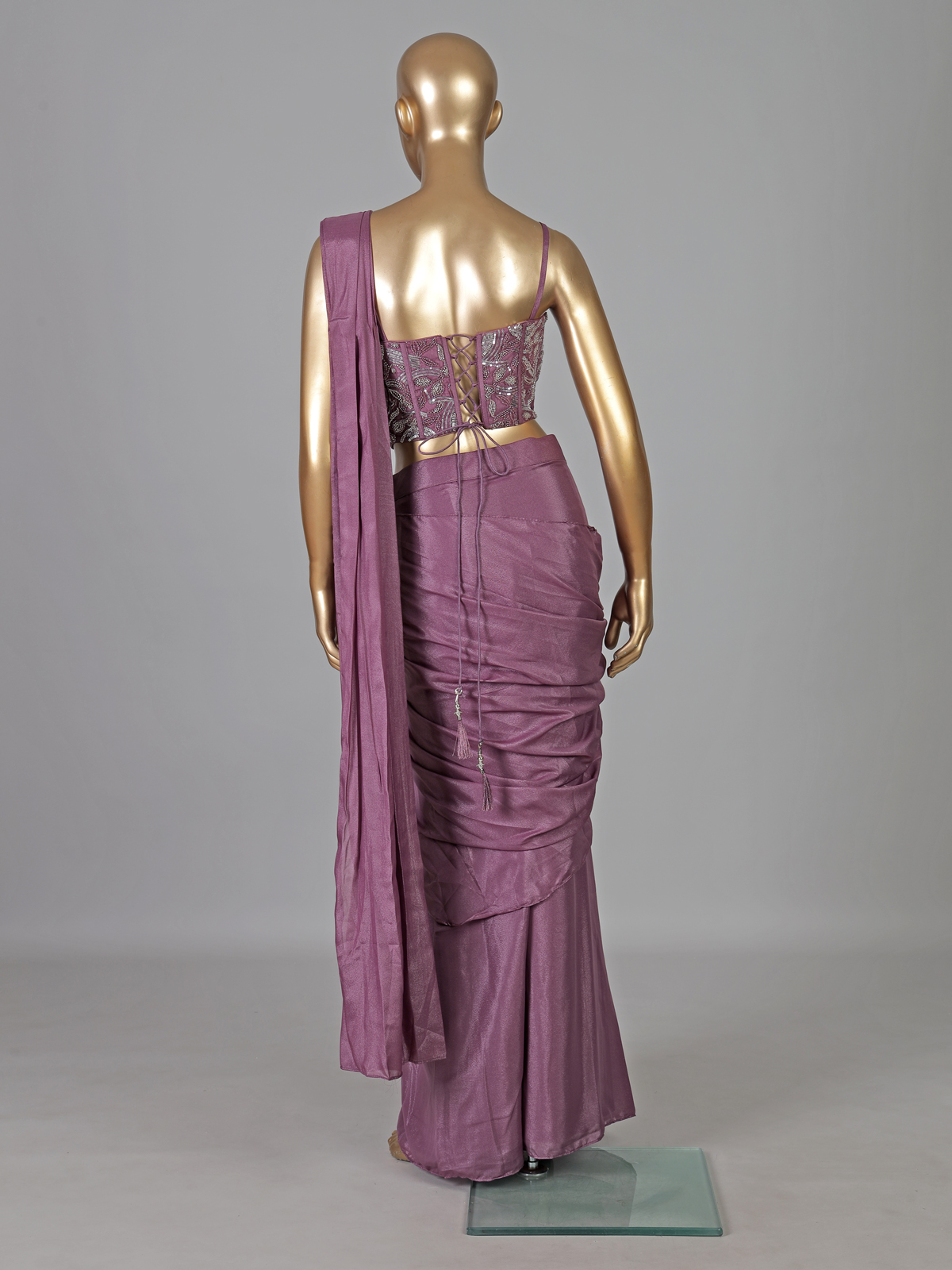 Purple Satin Silk Designer Ready To Wear Saree For Women