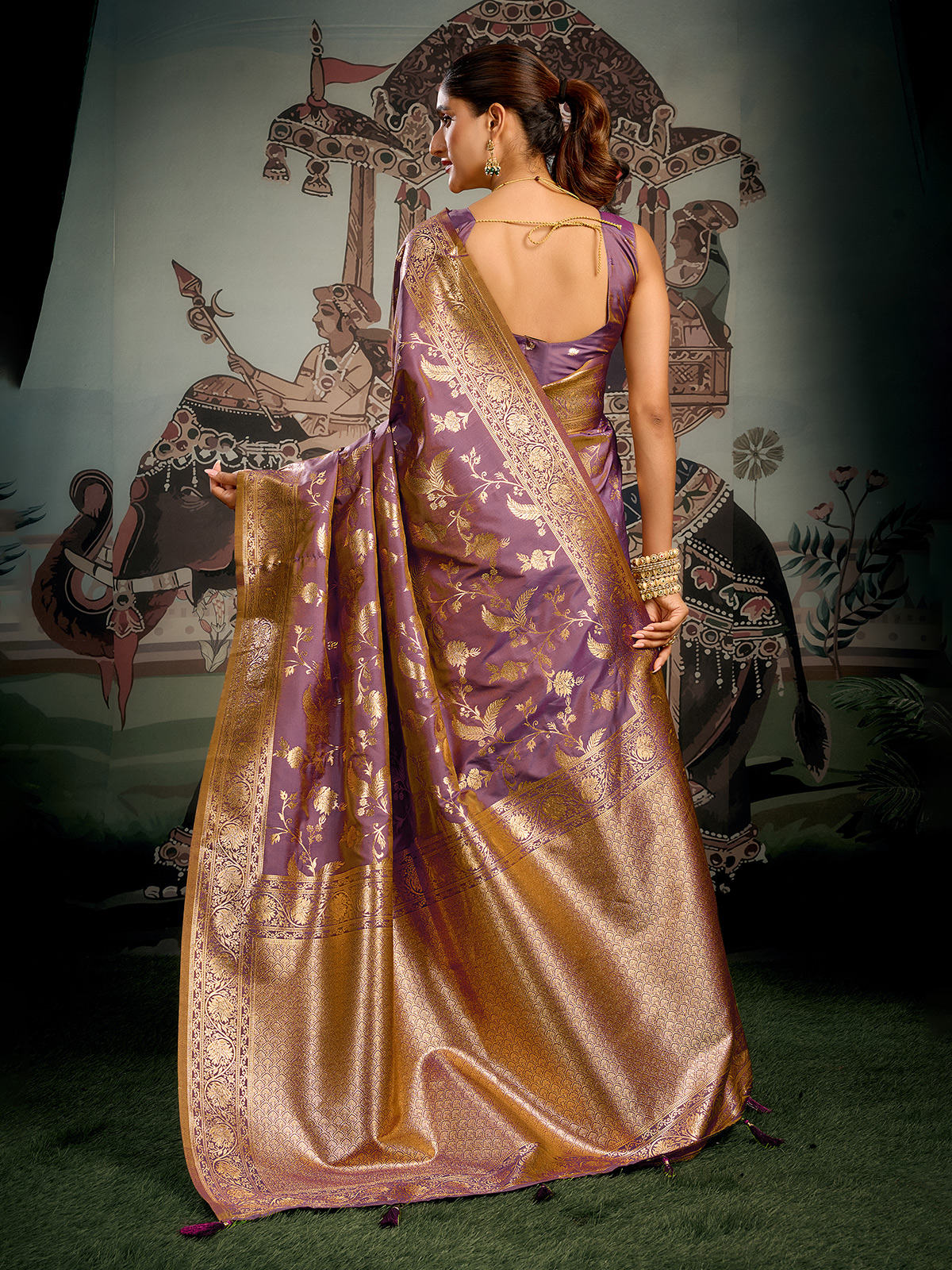 Purple Silk Saree Adorned With Delicate Zari Detailing