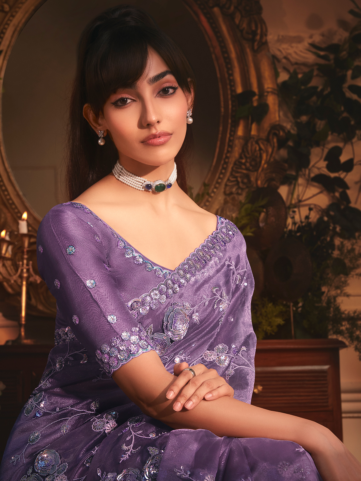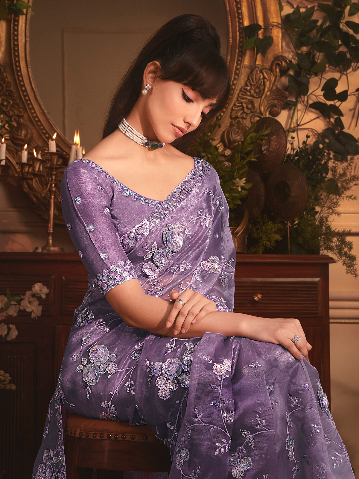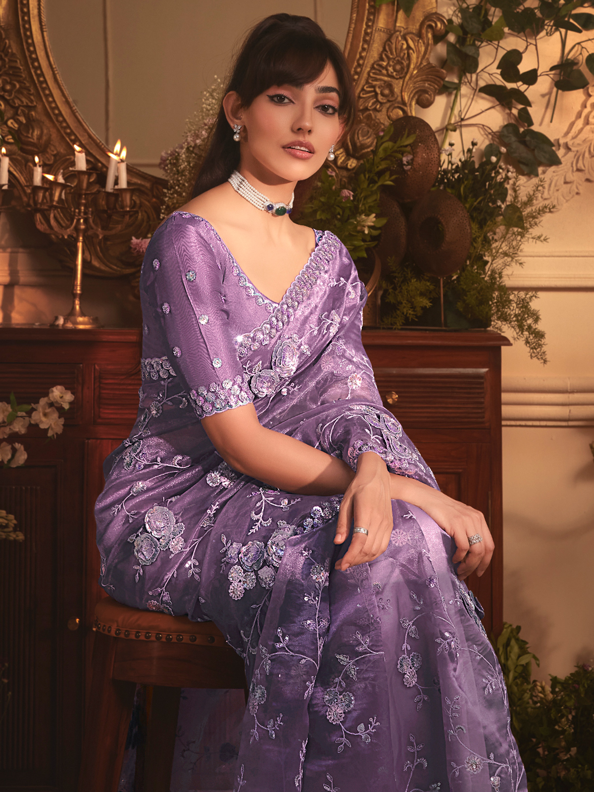Purple Tissue Organza Saree Adorned With Shimmering Sequins