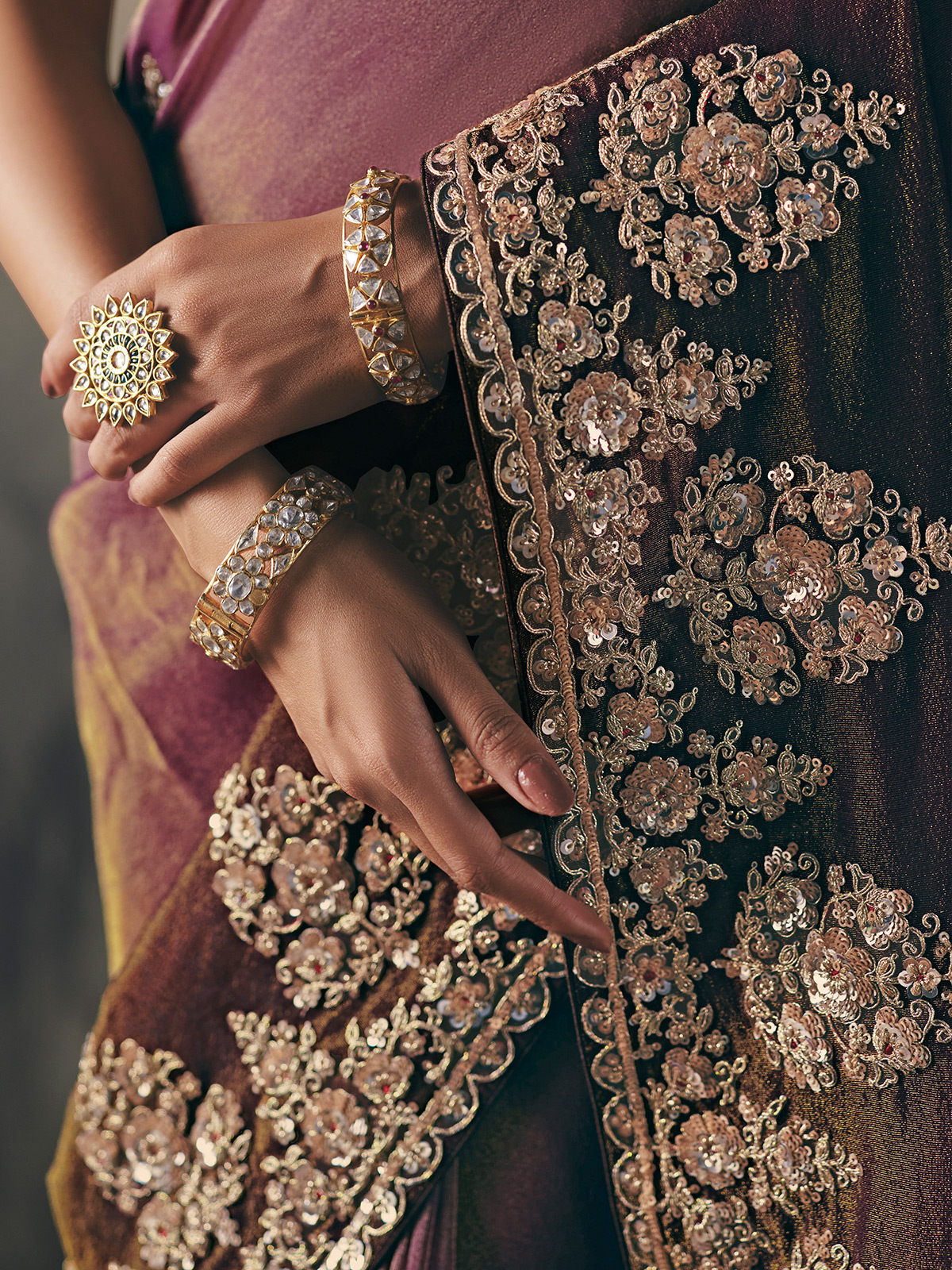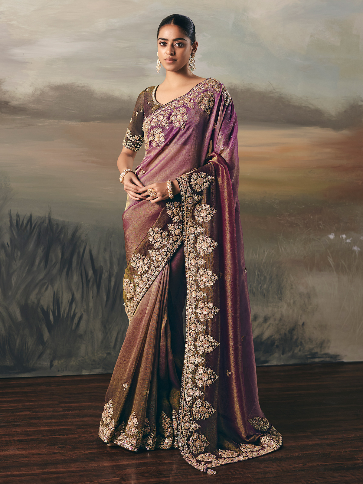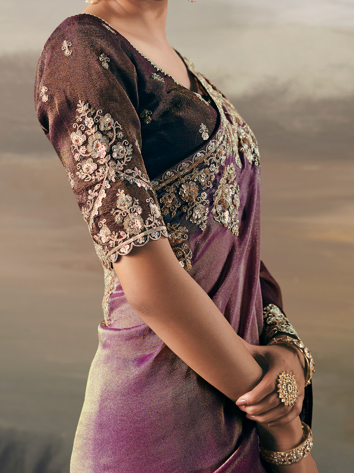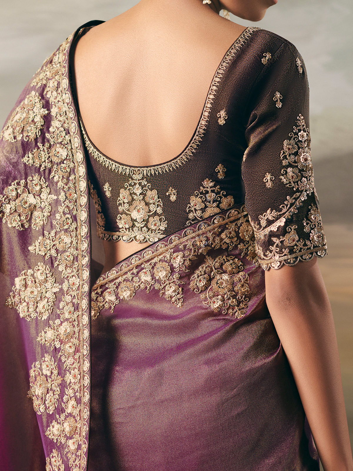 Purple Tissue Silk Embellished Saree