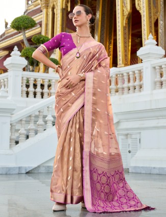 Purple Zari Worked Saree In Tissue Silk