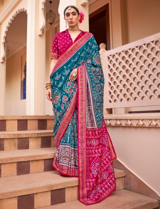 Rama Blue Designer Patola Saree