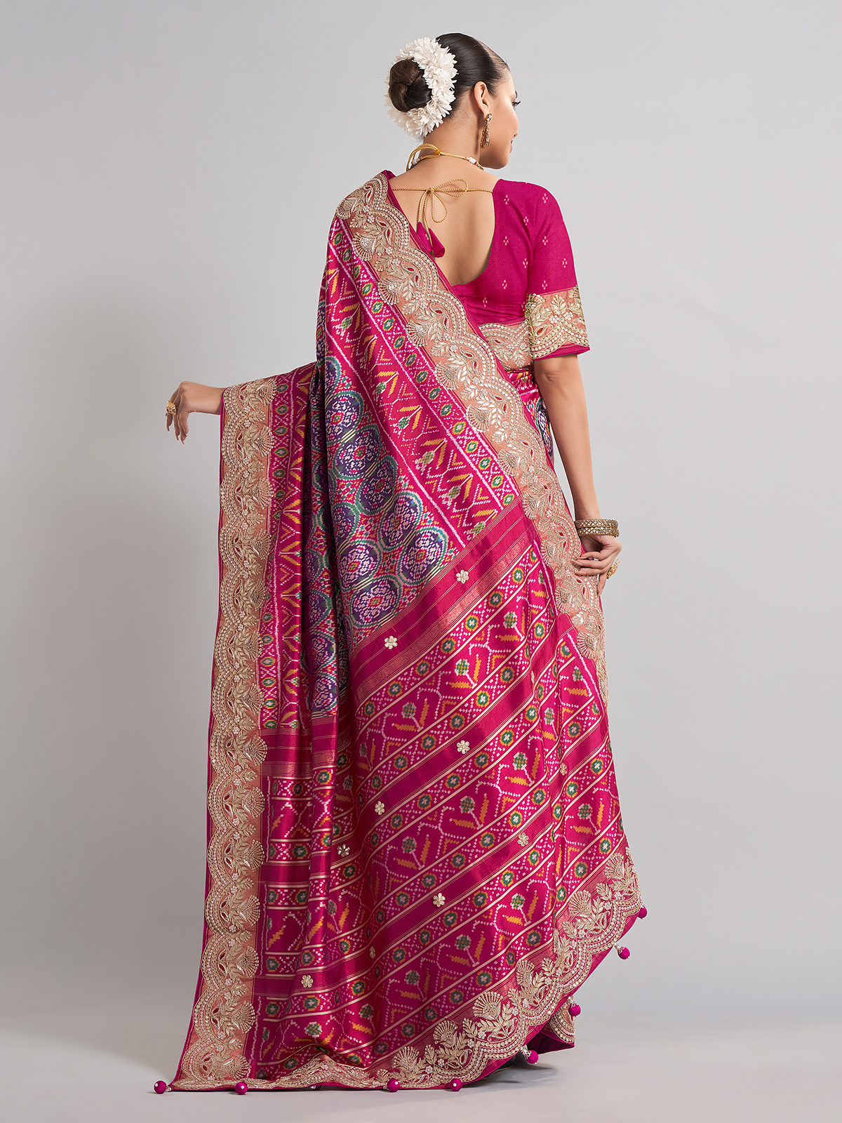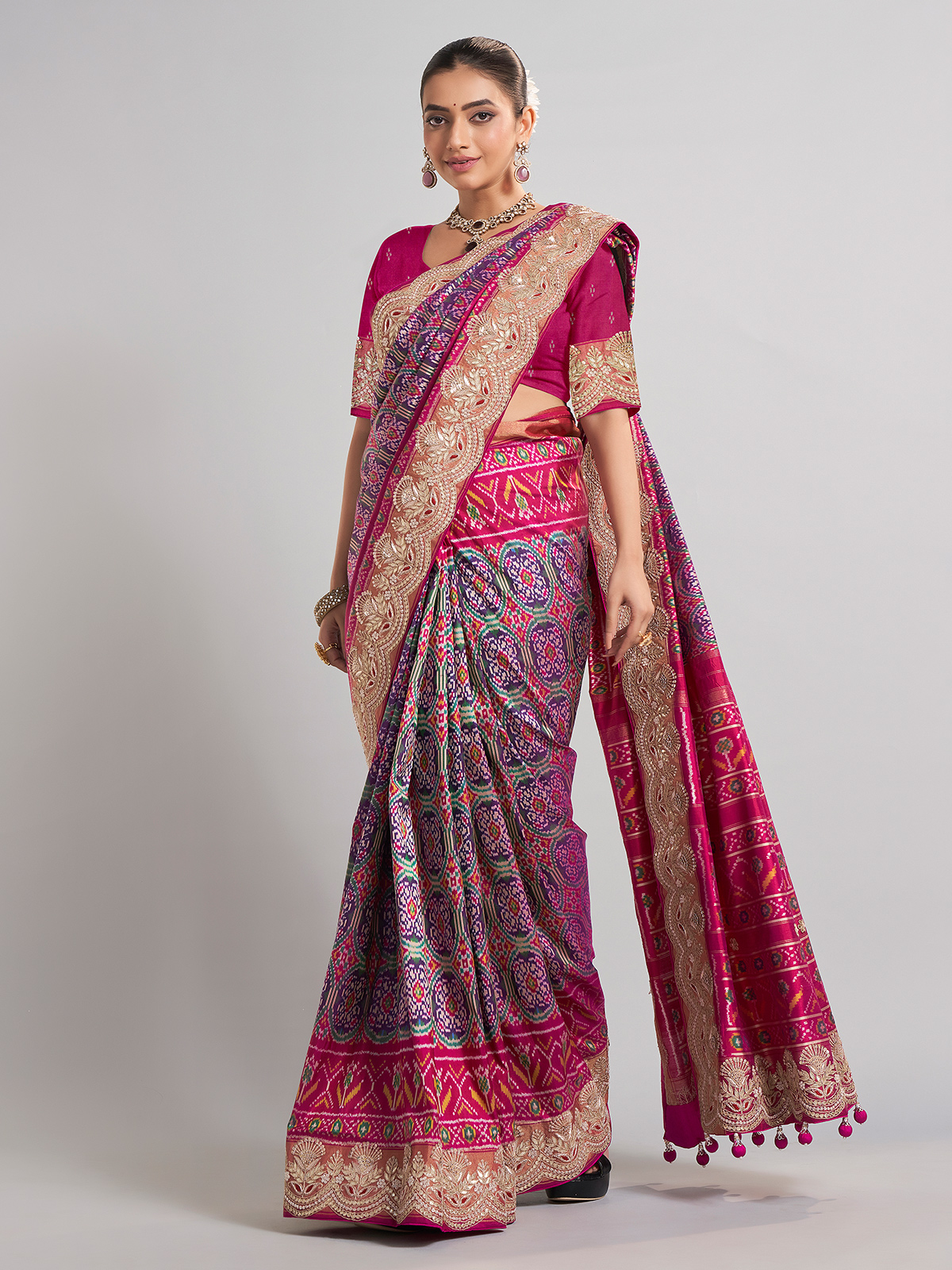 Rani Pink And Purple Patola Silk Wedding Wear Saree