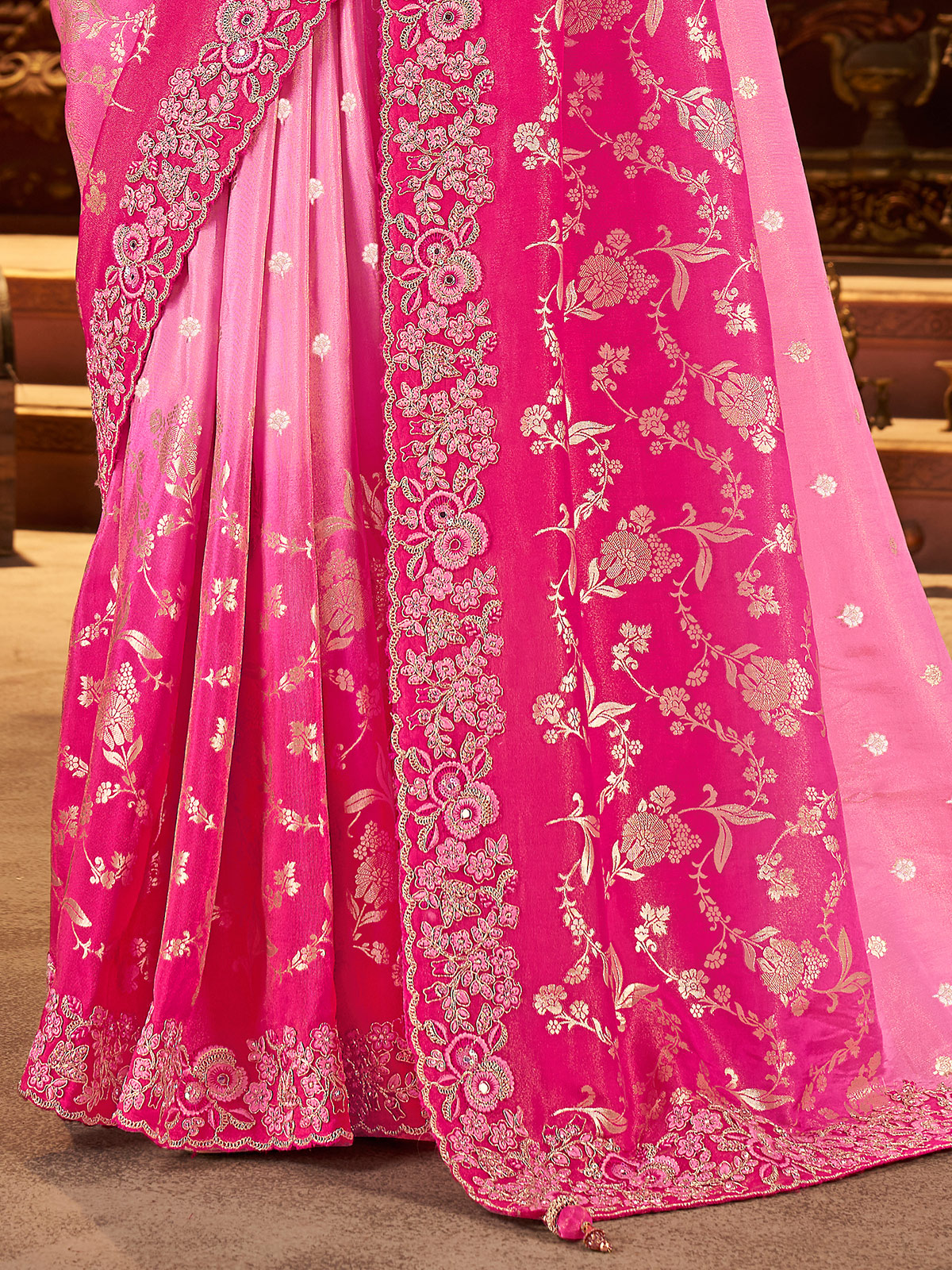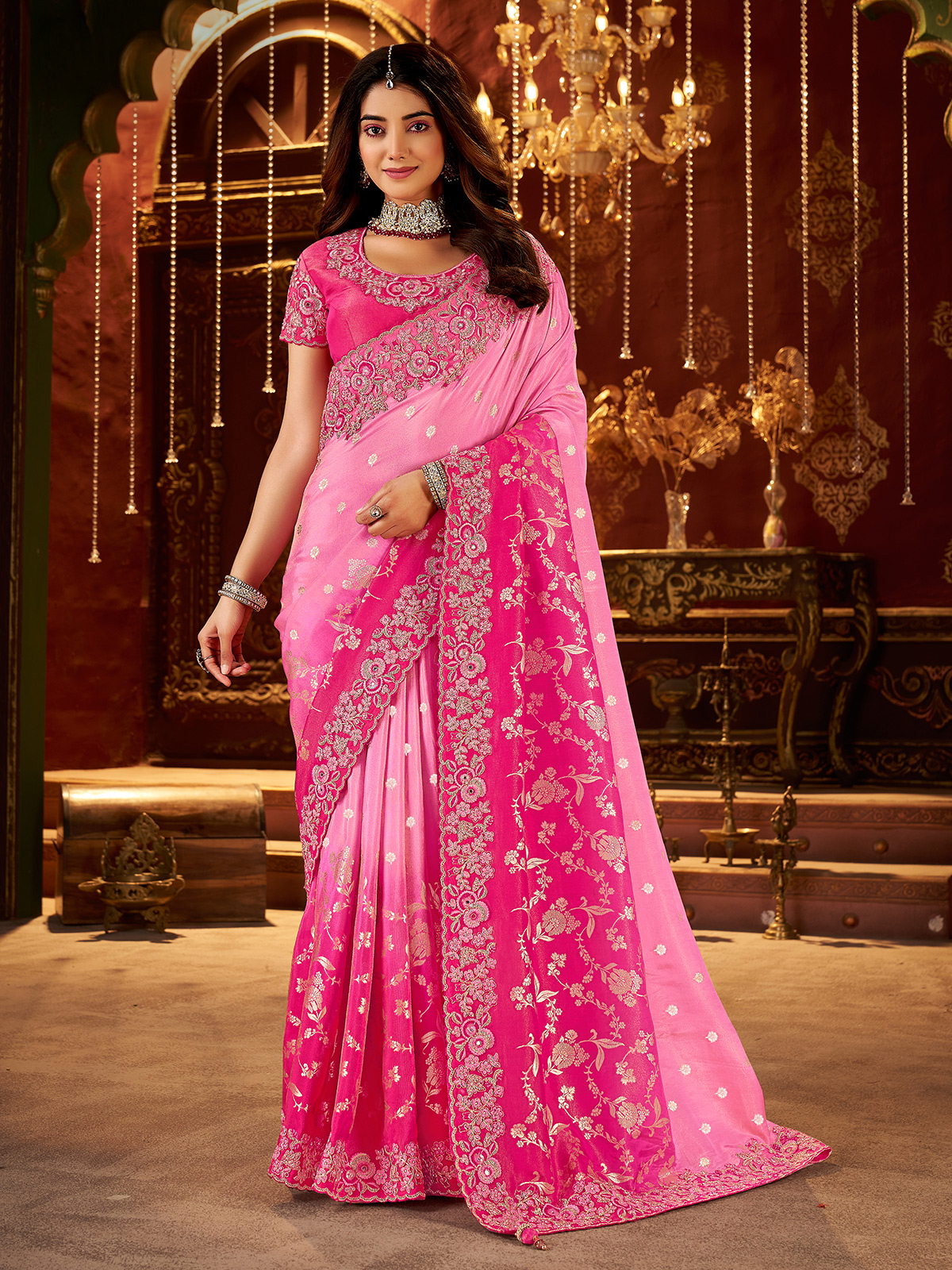 Rani Pink Shaded Soft Silk Saree For Wedding Wear