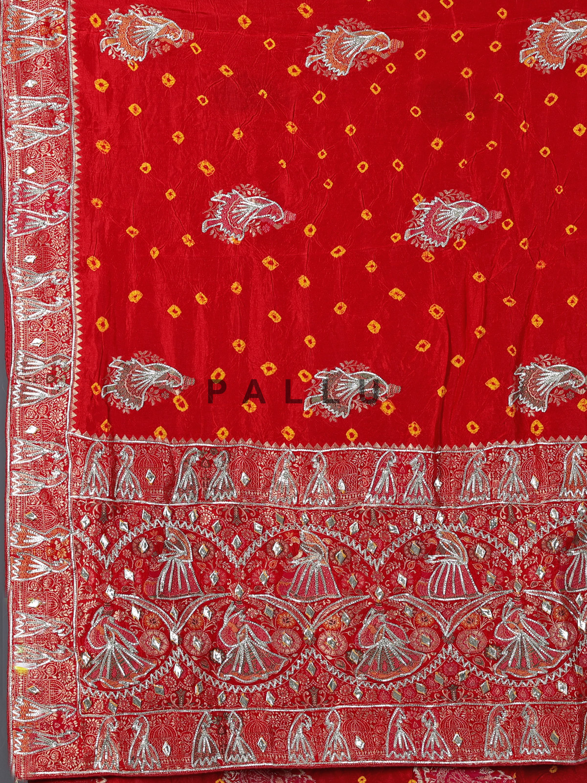 Red Bandhej Silk Printed Gota And Zari Festive Saree