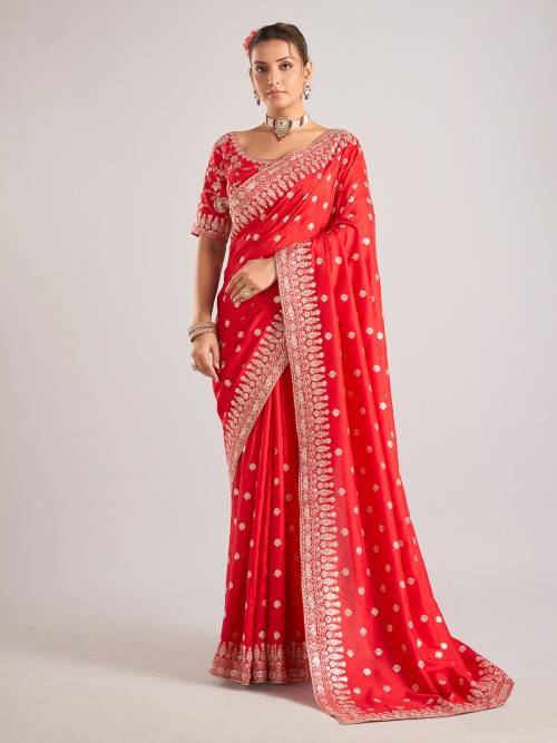 Red Dola Silk Saree With Ready Made Blouse