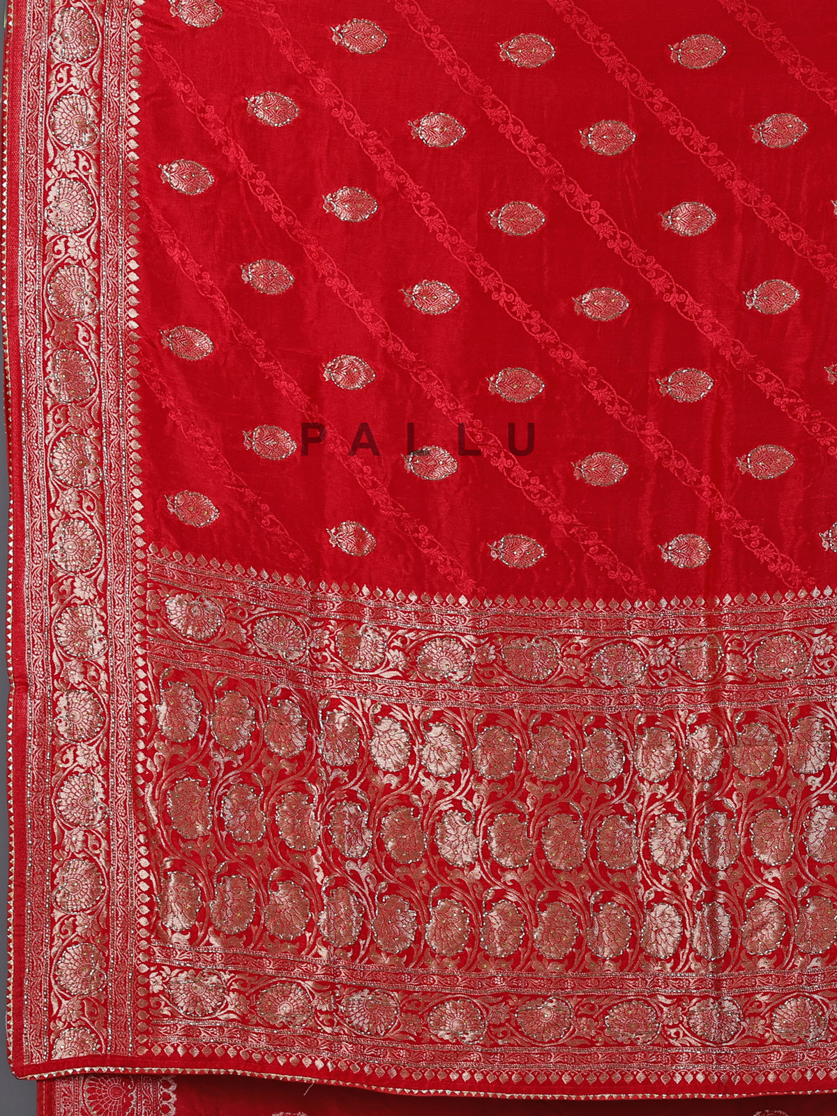 Red Dola Silk Wedding Festive Embellished Saree