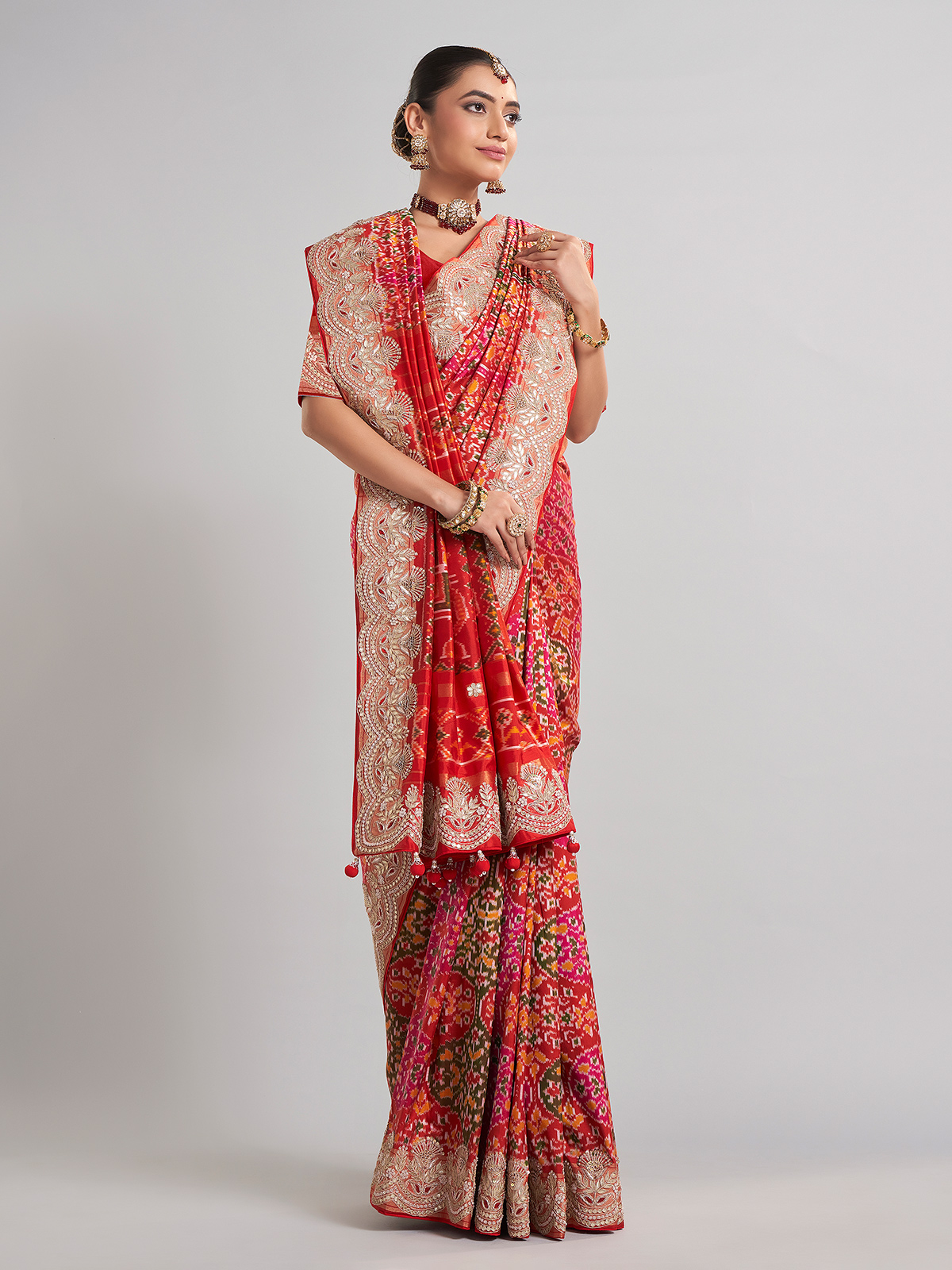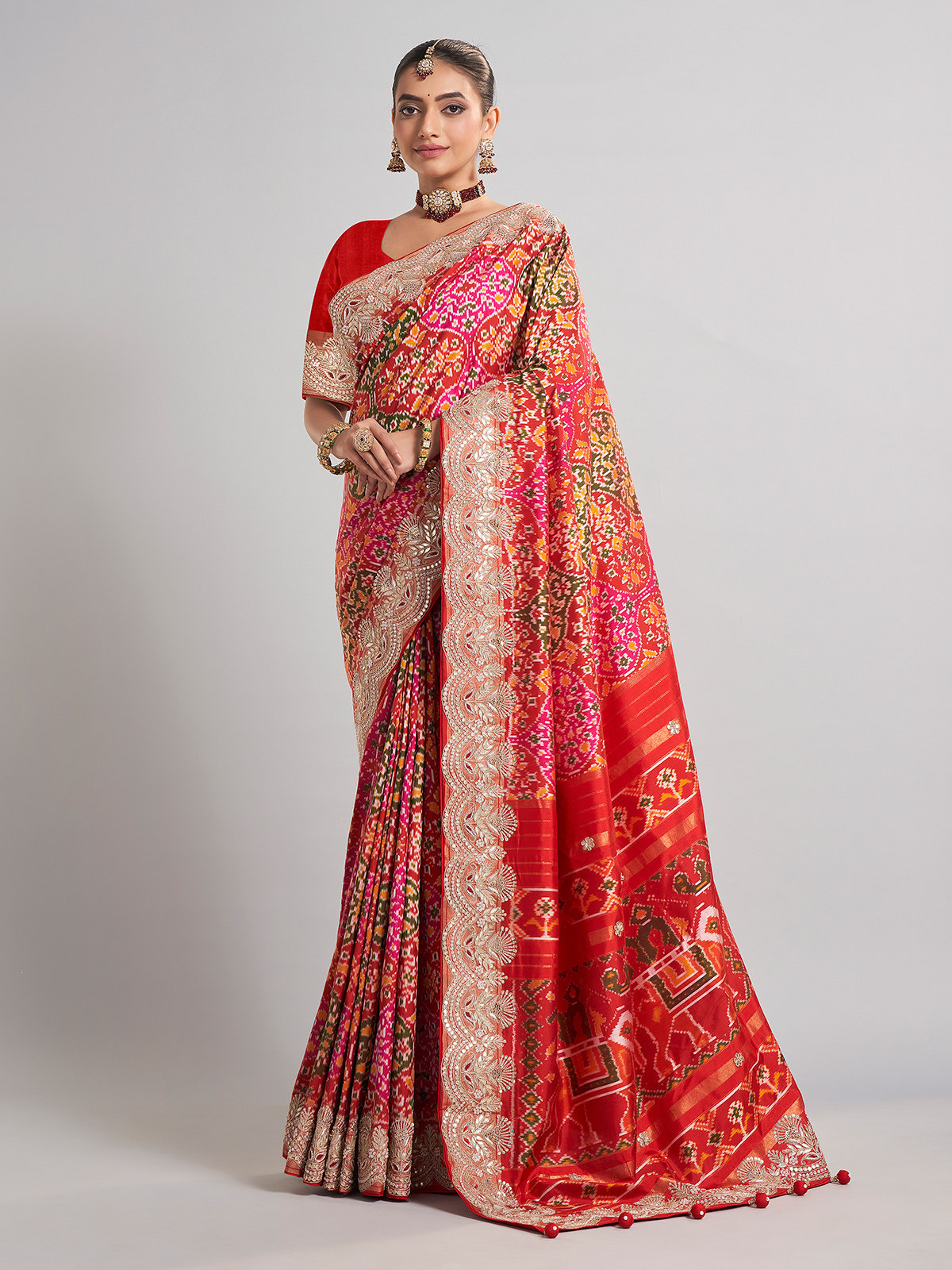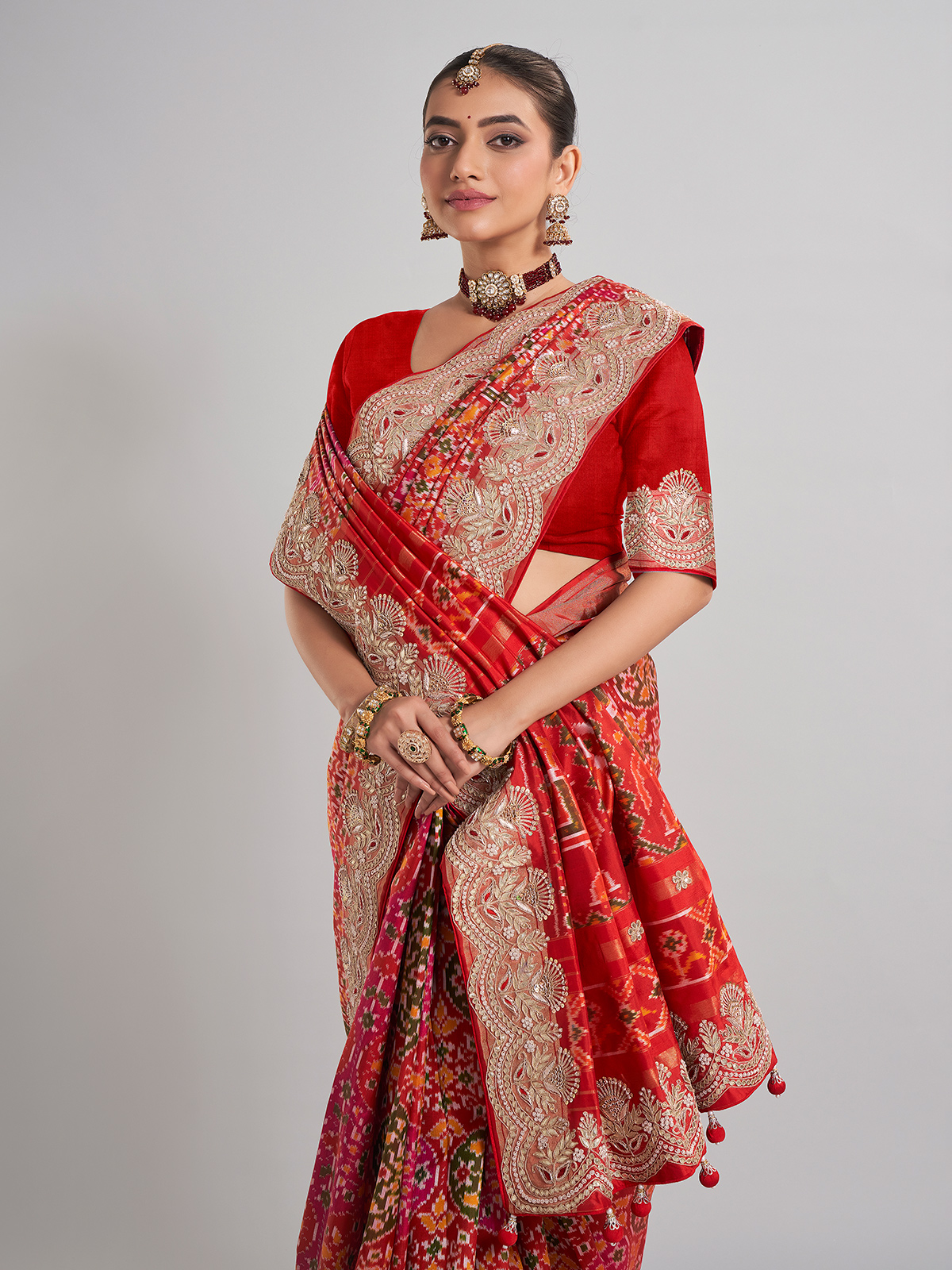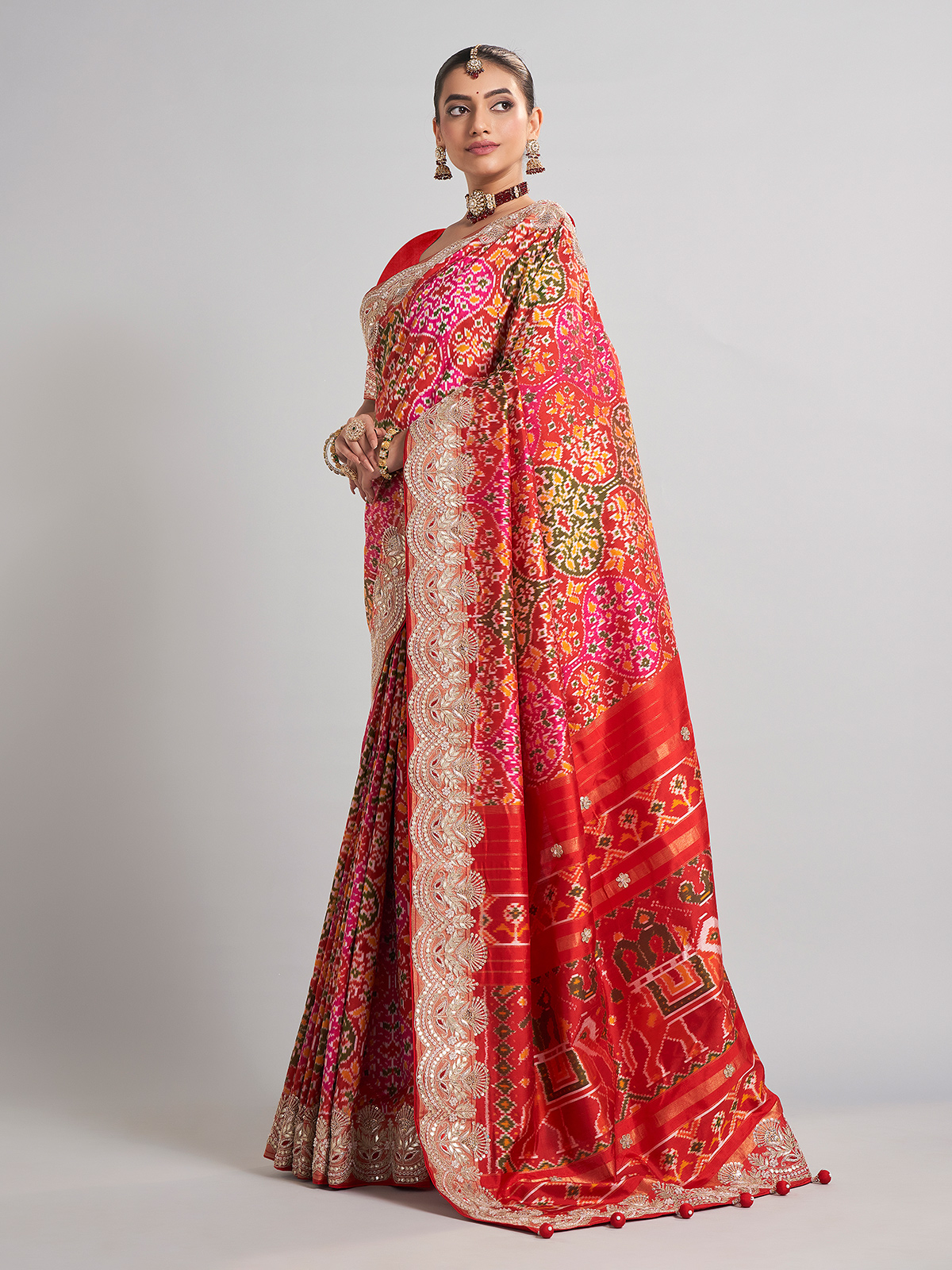 Red Hyderabadi Patola Silk Saree With Royal Touch