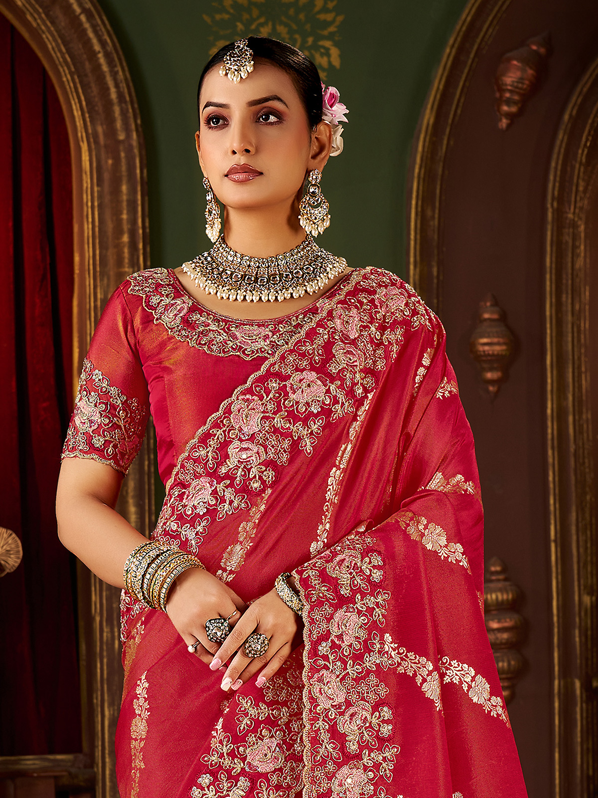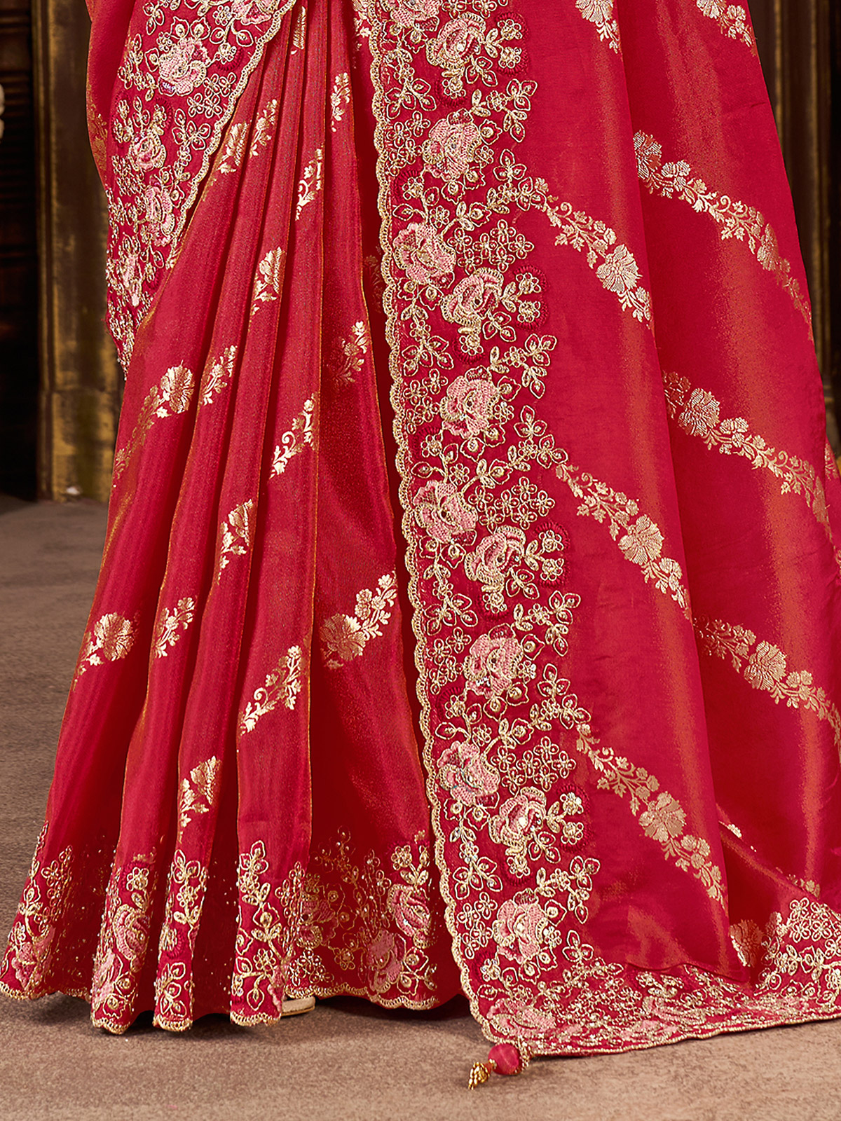 Red Soft Silk Zardosi Embroidered Wedding Saree
