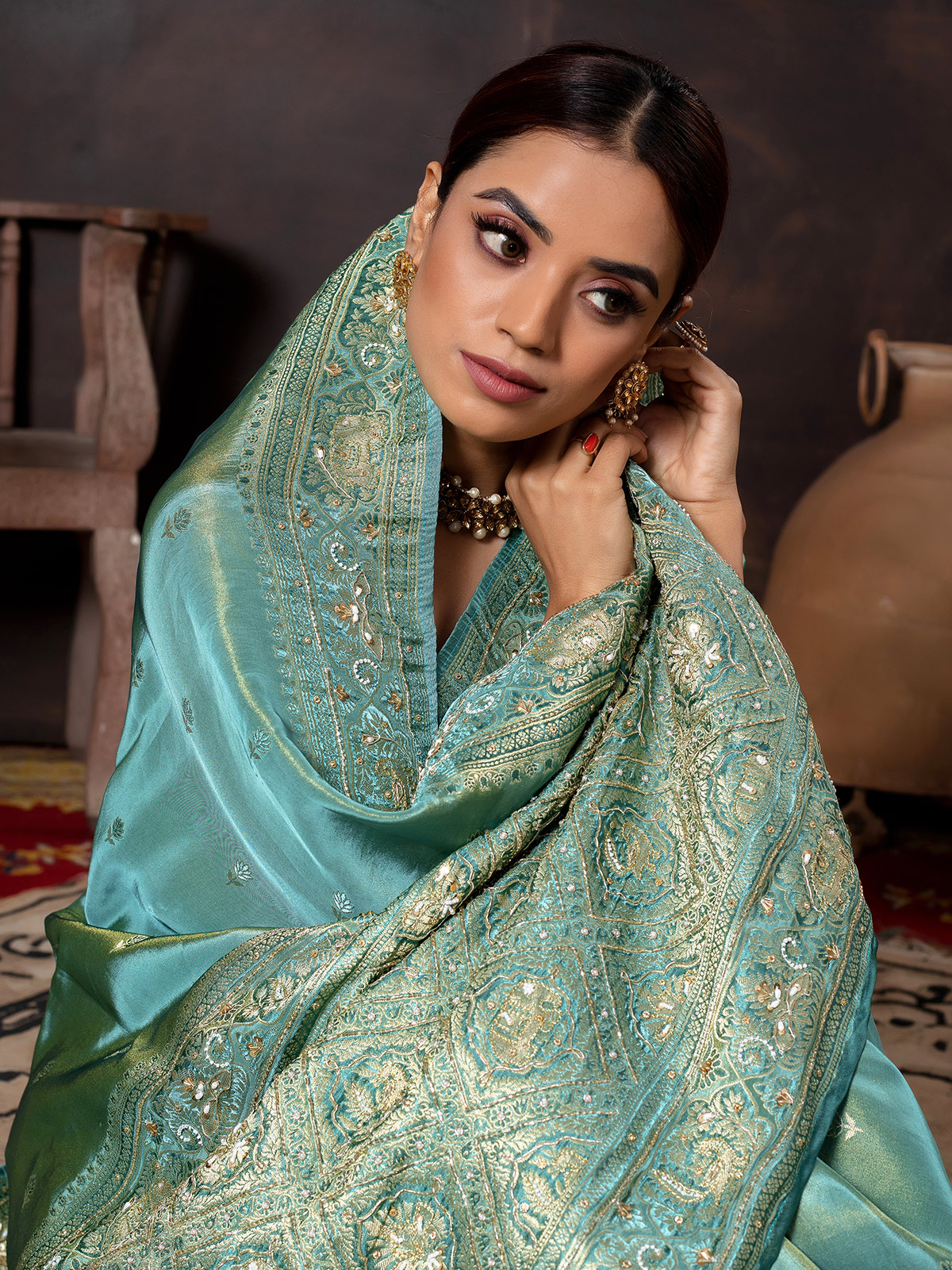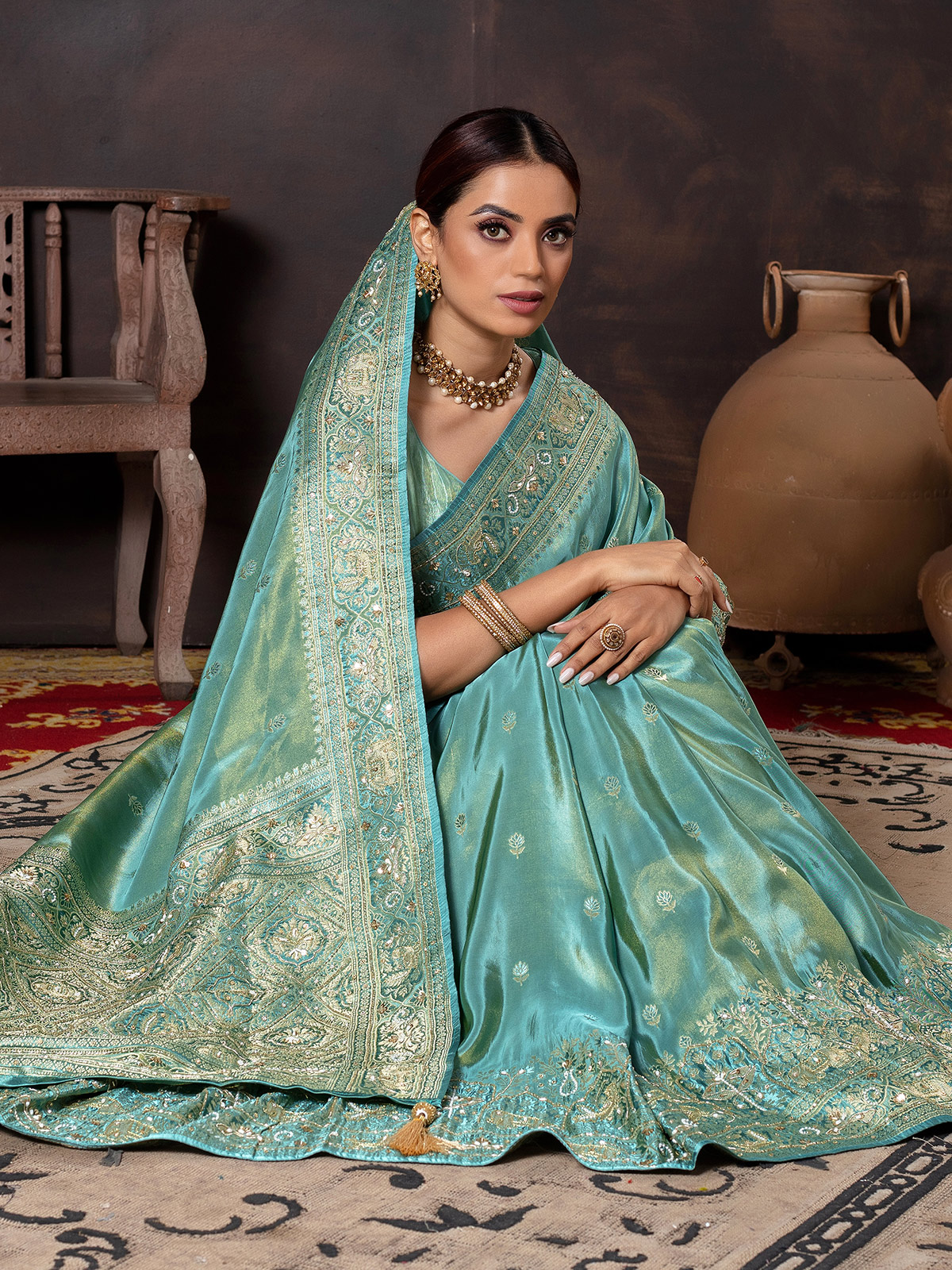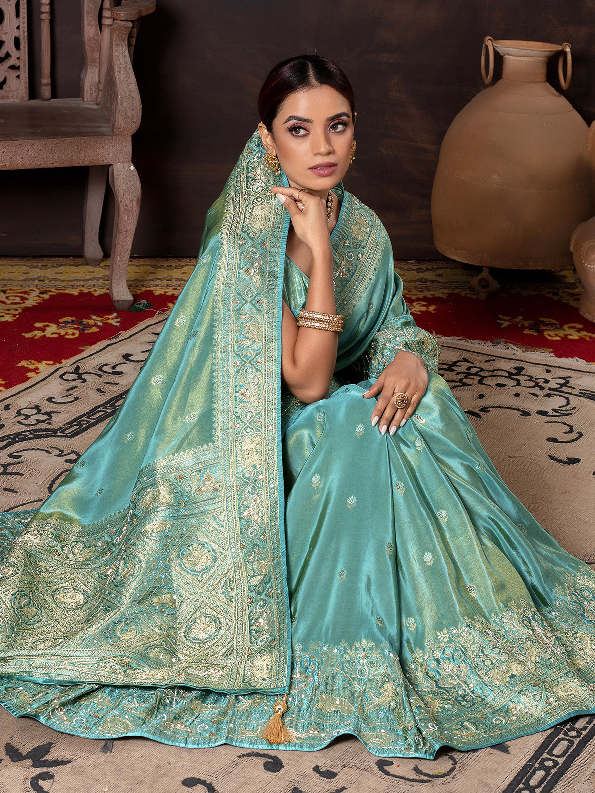 Soft Aqua Dola Silk Wedding Saree