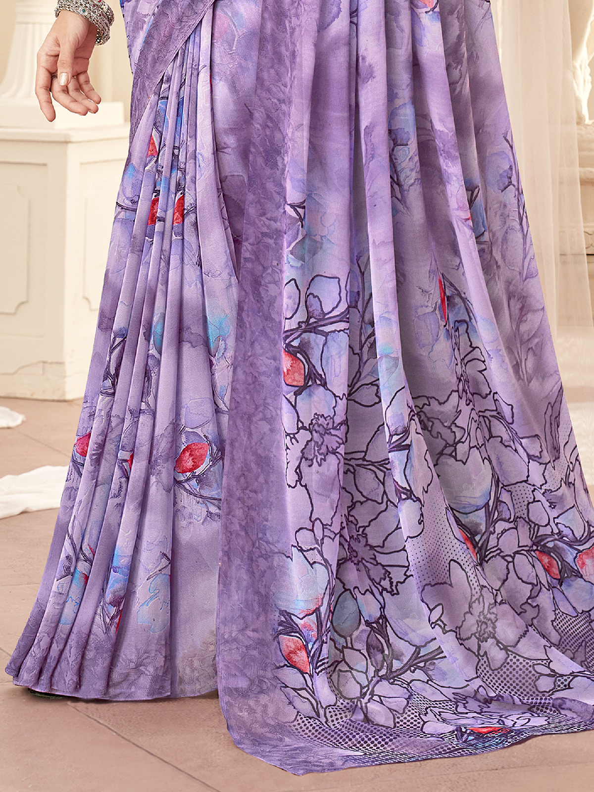 Soft Lavender Floral Shaded Georgette Saree