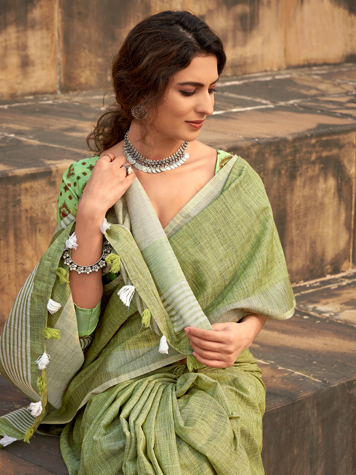 Soft Linen Silk Green Saree