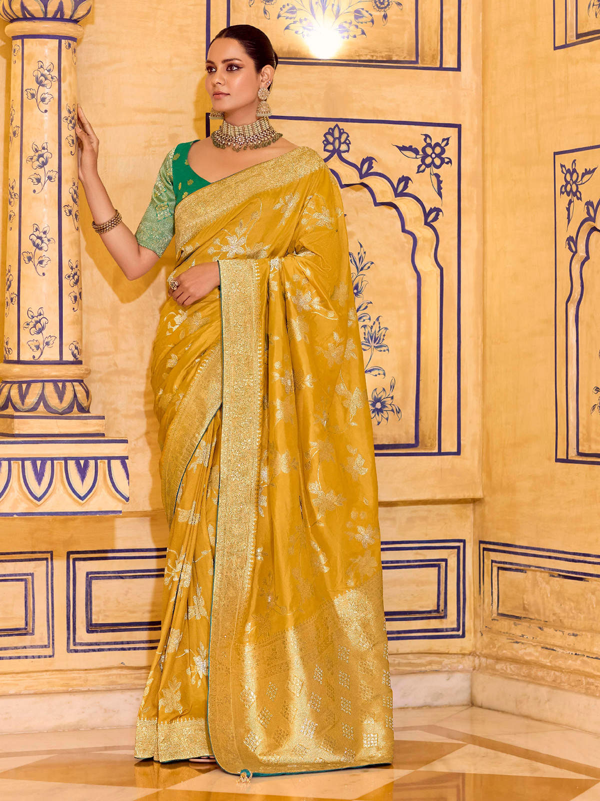 Vibrant Yellow Banarasi Crepe Silk Saree